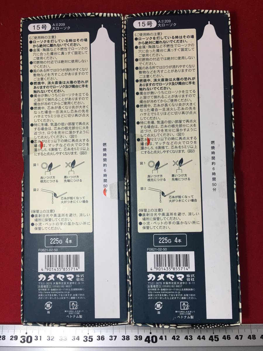 亀山燭 15号 225g 4本入X2箱組 製品。