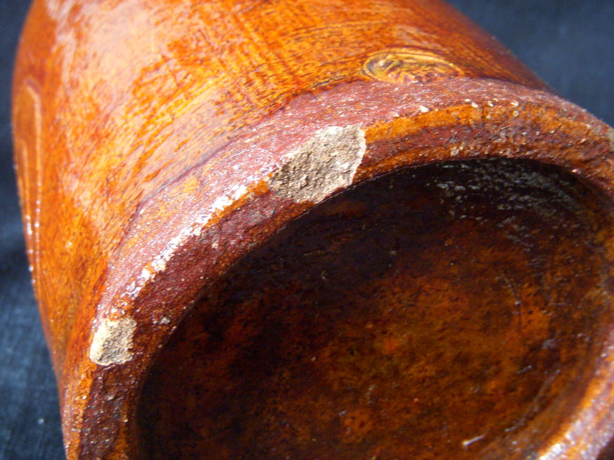高台にカケ数か所ございます。また、かけた部分に何か塗ってあるようです。中古品につき細かく気にされる方はお断り致します。