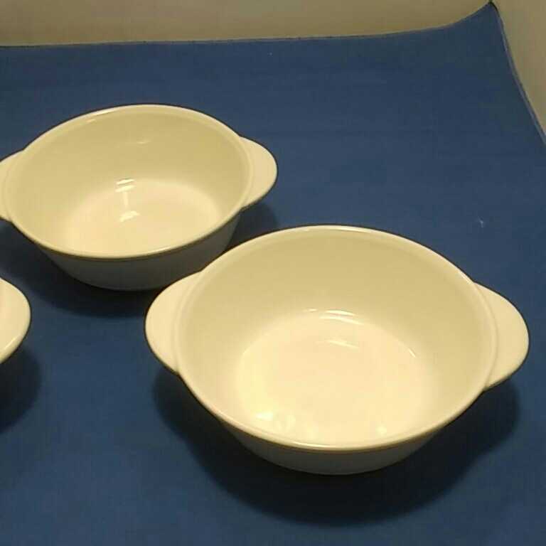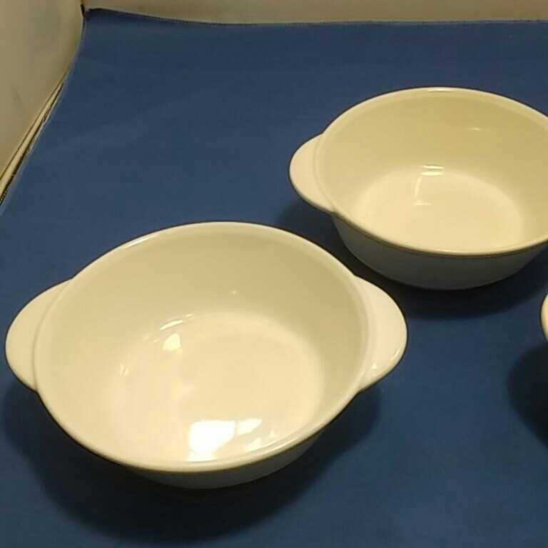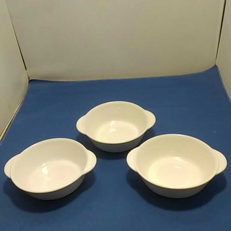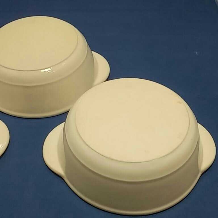 OVEN AND MICROWAVE SAFE JAPPANと裏に記されている、グラタン皿の3点セットになります。本品長期間保管していた品なので、商品詳細は不明です。現状態のお取引になります。