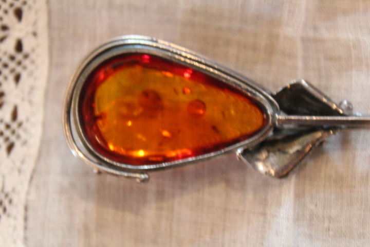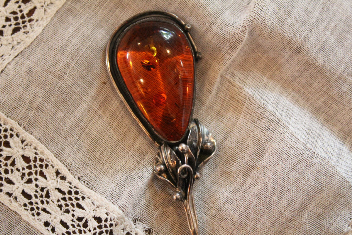 アンティーク【琥珀 SILVER ハットピン】