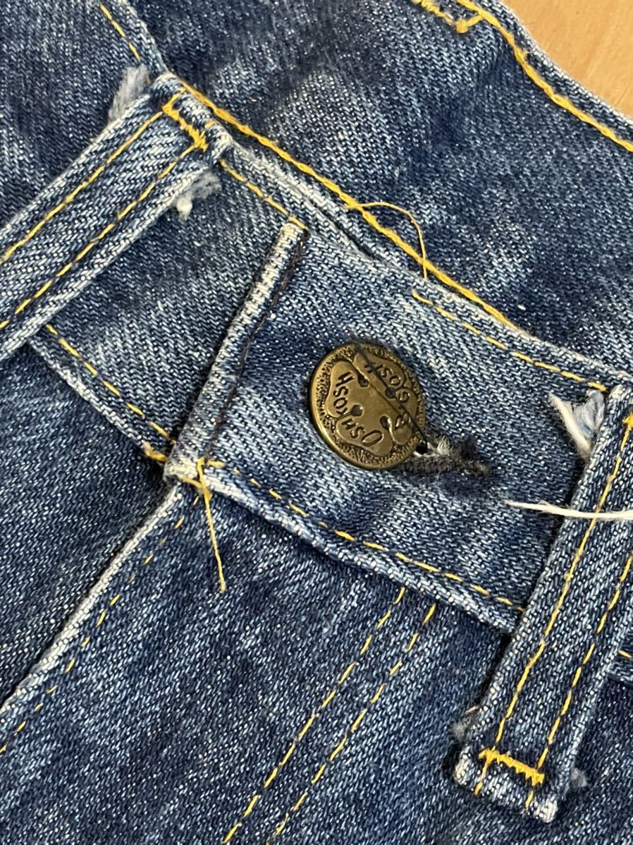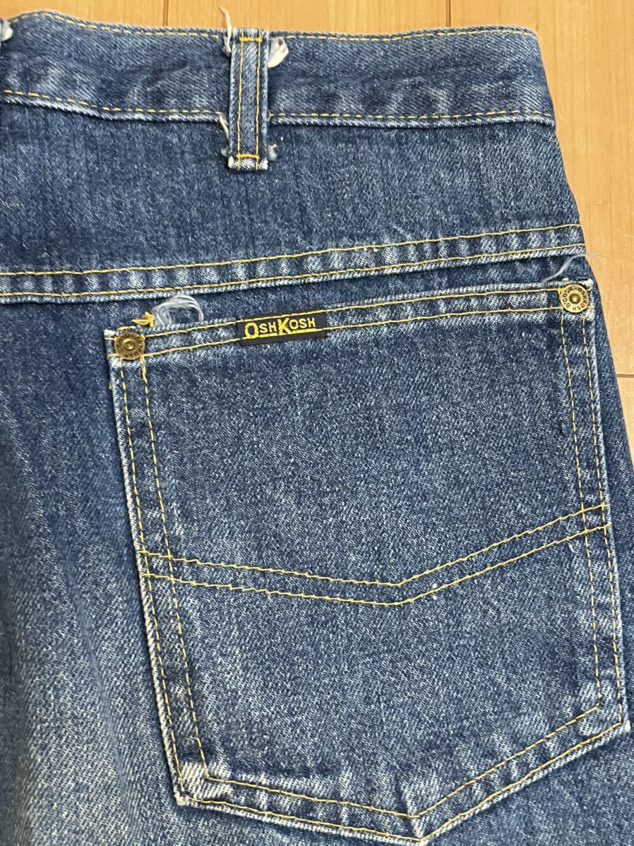 オシュコシュのヴィンテージデニムを出品致します。色は、サイズは33 x 34、実寸平置きウエスト40cm、股上31cm、股下85cm、裾幅19cmです。