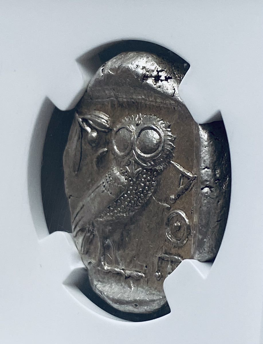 商品説明 | 多くのオークションの中から私の商品に興味を持って頂きましてありがとうございます。 古代ギリシャ アッテカ アテネ テトラドラクマ銀貨のご紹介です。 NGC社の鑑定でグレードはMS(未使用)、Strike(打刻)2/5、Surface(表面状態)5/5と状態もバッチリです! 人気のアテネフクロウコイン・・・ フクロウはギリシャ神話になぞらえ「神の使い」「英知の象徴」です。 裏面には知恵の象徴と言われるフクロウと豊かさの象徴とされるオリーブが描かれており、表面には、戦いと知恵の女神アテナです。 古代コインの定番で普遍的人気の一枚です。そして歴史的な芸術遺産とも言えるコインになります。 コレクターとしては必ずMSグレードを1枚は持っていたいコインとなります。またコレクターの中でも何枚もお持ちの方、結構おられます。 重量:17.20g 品位:銀 国名: アテーナ(ギリシャ) 発行年:BC440-404 状態・グレード:NGC MS Strike:2/5 Surface:5/5 |