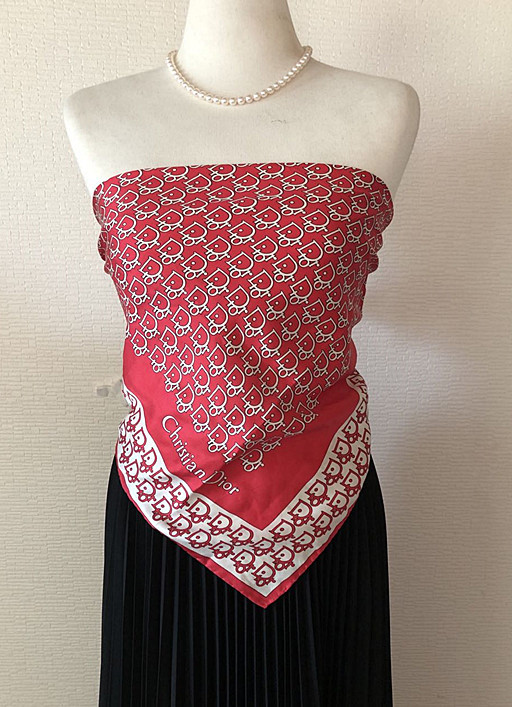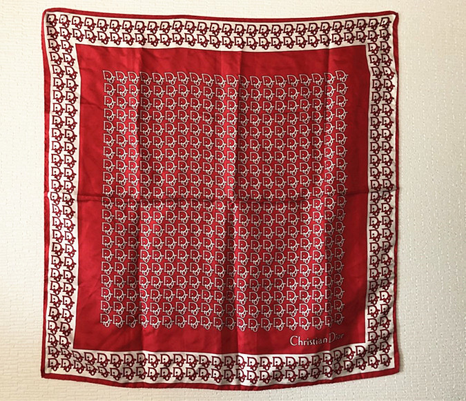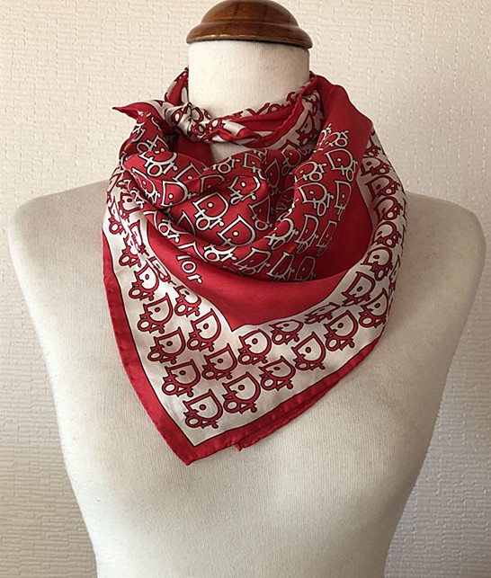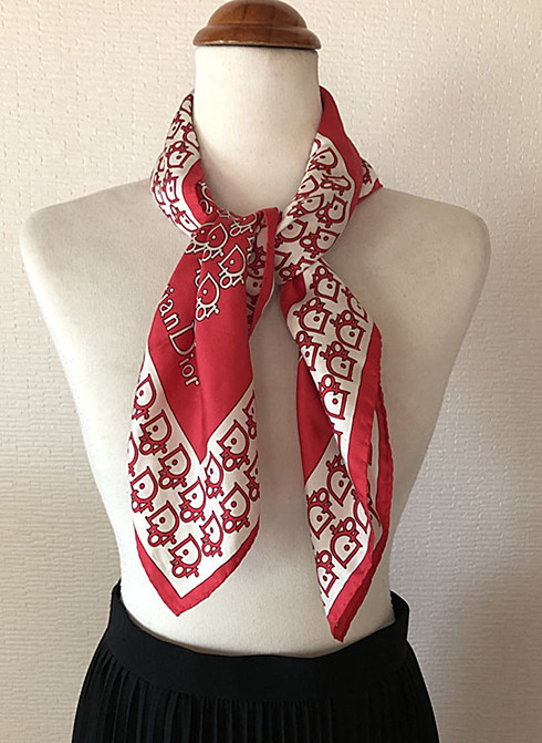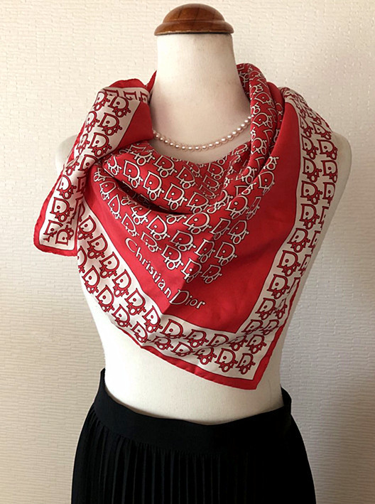 Christian Dior クリスチャンディオール シルクスカーフ トロッター ロゴ柄 総柄 ビンテージ(C6-5)