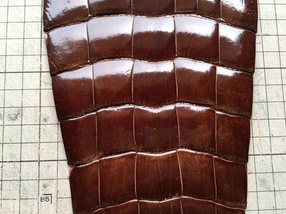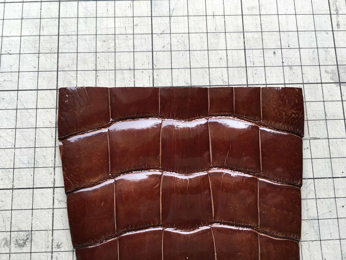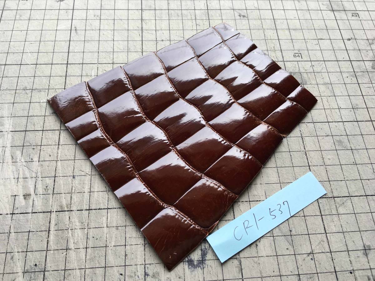 CR1-537★グレージングシャイニーブラウン茶色 極上スモールクロコダイル レザークラフトはぎれ ハギレ アリゲーター革小物