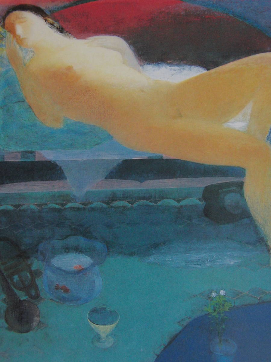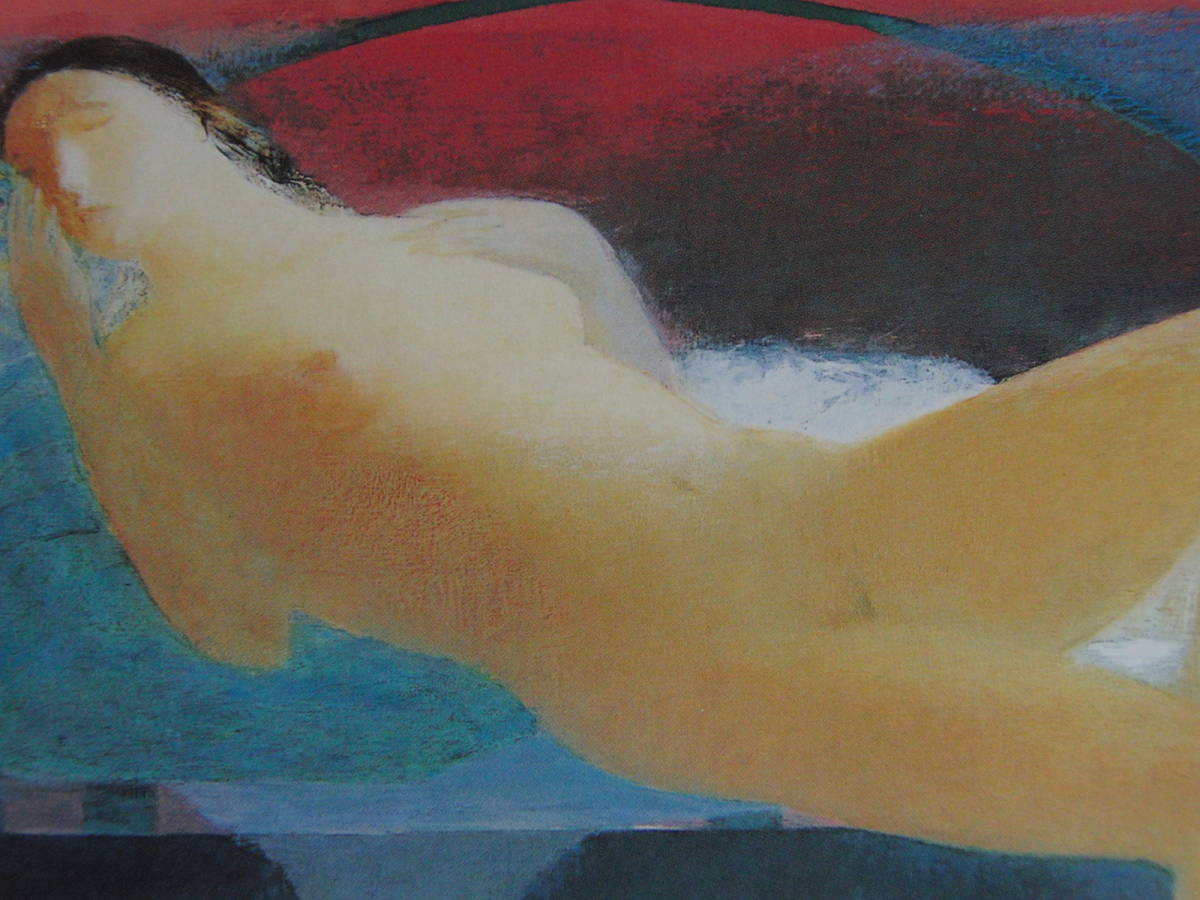 堀内貞明、〈ひとり〉、希少画集画、高級新品額・額装付、状態良好、送料無料