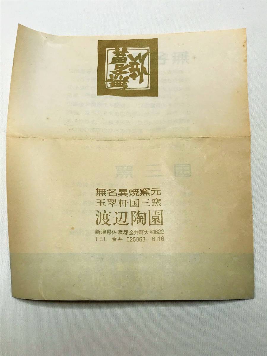 【未使用品】新潟県 無名異焼窯元 玉翠軒 国三窯 渡辺陶園 渡辺国蔵作 湯飲み茶わん