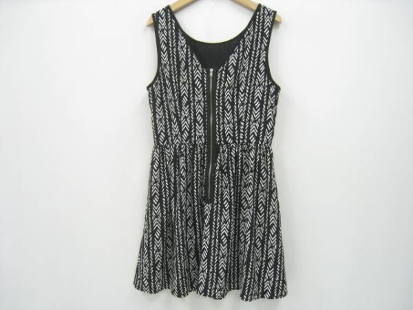 FOREVER21 ノースリーブワンピース ミニ 総柄 白黒 Mサイズ