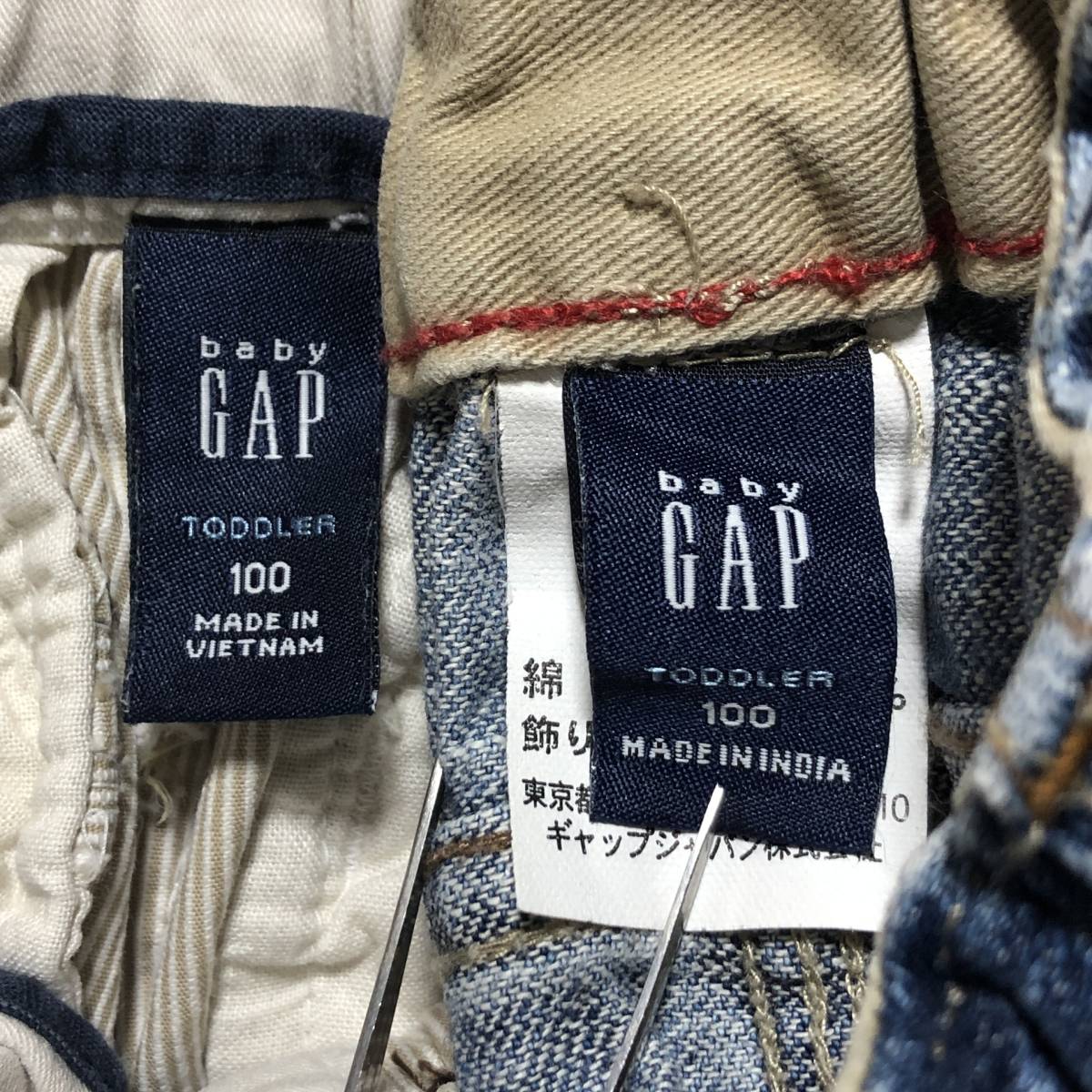 GAP ギャップ パンツ 2枚セット デニム + ストライプ 子供100cm 美品 管理A1236