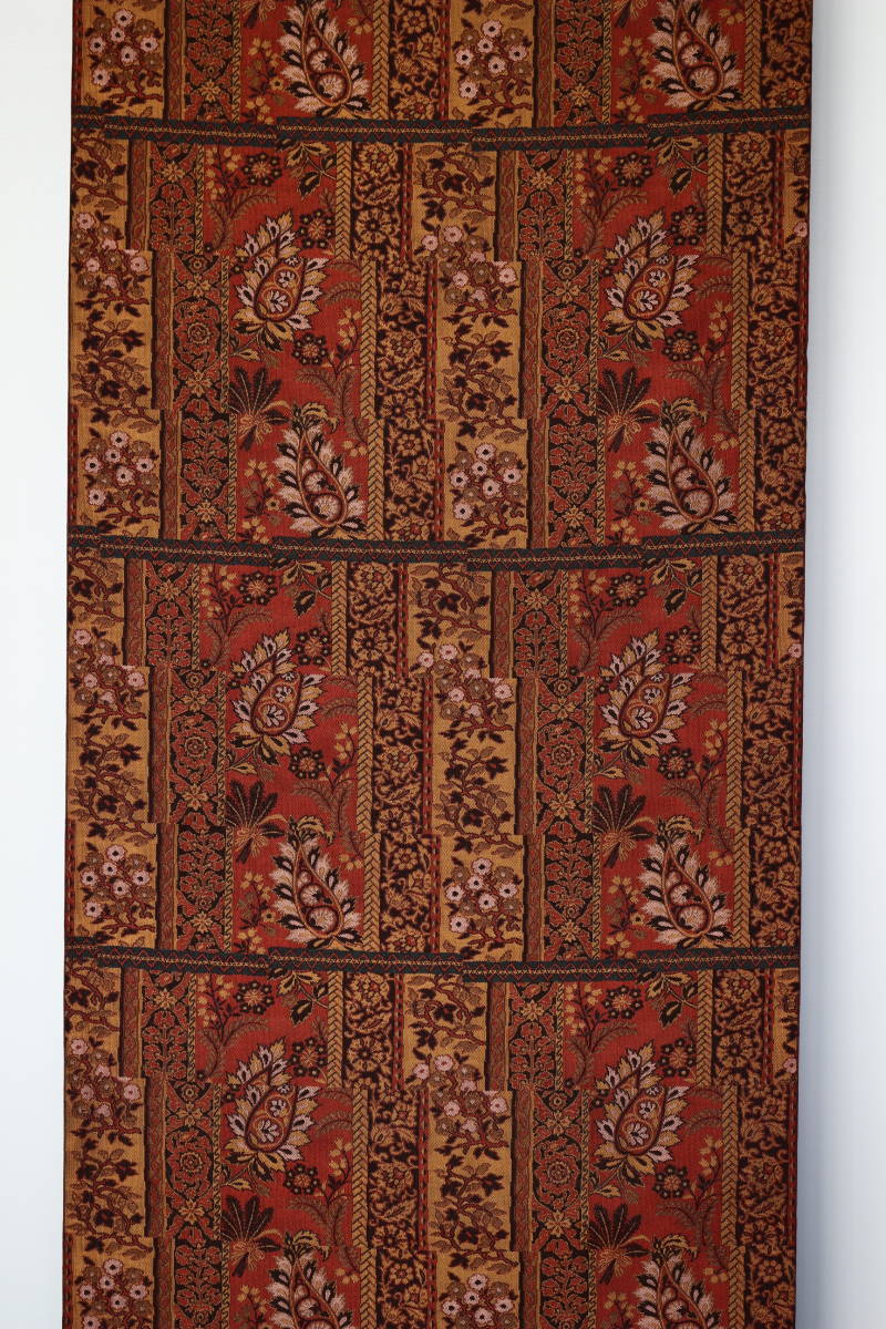 レンガ色に黄金色、高麗納戸と赤茶の艶の有る良質生地を細かく織り上げ、しなやかで独特な風合の締めやすい帯です。
