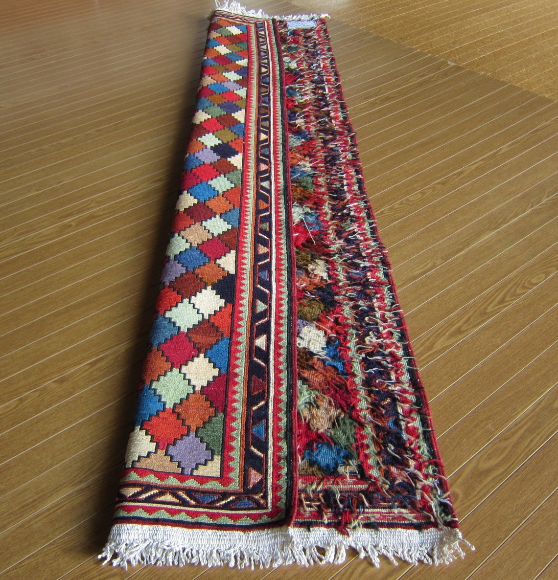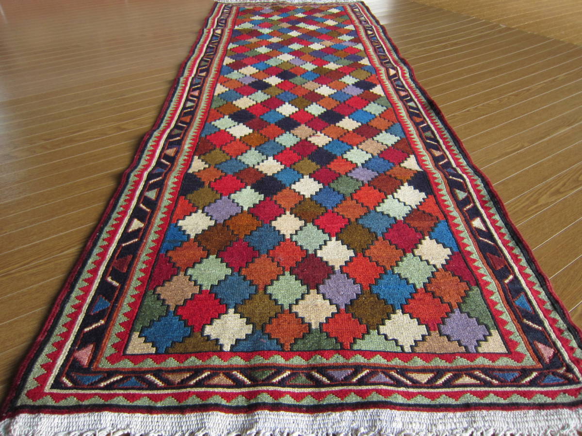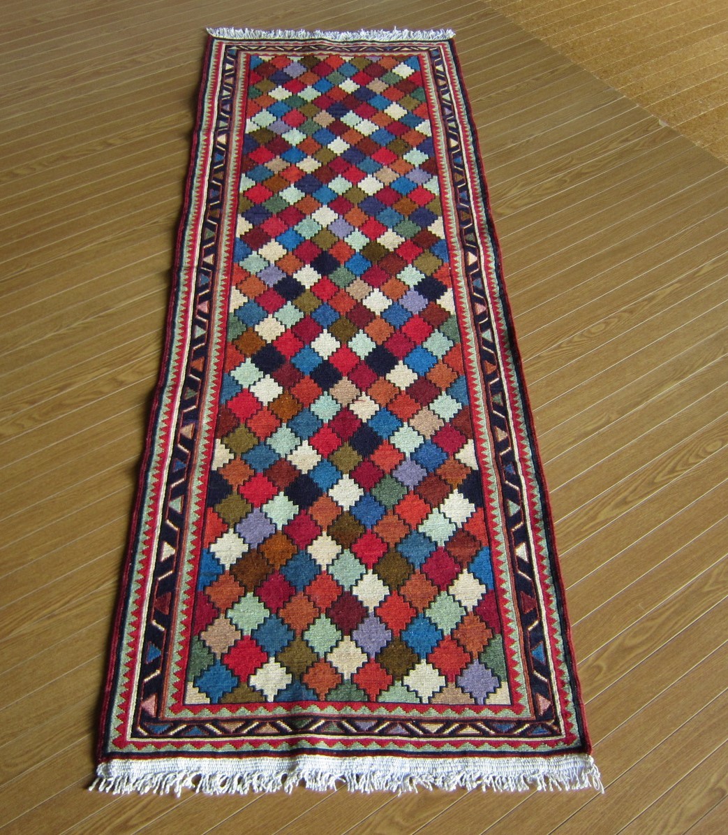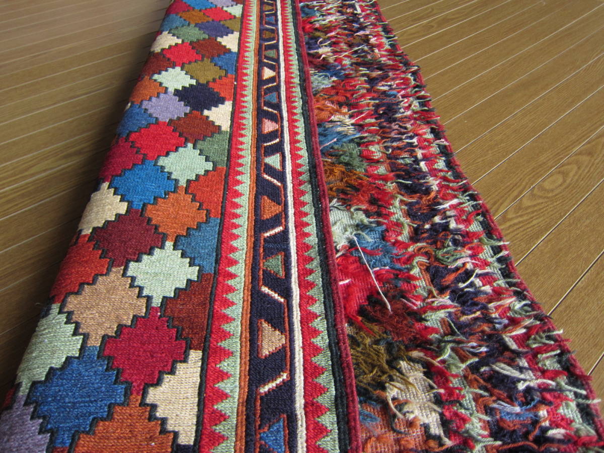 商品説明 | ★素材 : ウール・手織り・スマック織り ※スマック織りとは、イランのキリムの織り方の技法です。 土台の縦糸と横糸の上にもう一本横糸を絡めるように 巻き込んで織っていく高度なテクニックで、 刺繍のように細かな文様を描けることができます。 スマック織りは裏面に模様の糸を渡してあるので 片面使いのキリムになります。 ★サイズ : 約 192×70 cm (房を含まない長さです) ★産地 : イラン・アゼルバイジャン ★状態 : 新品 kxpgs342+ZIBACARPET絨毯 kxpgs342+ZIBACARPET取扱いペルシャ絨毯 FARSHEZIBA_KILIMキリム |