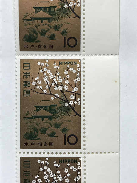 未使用 切手 水戸 偕楽園 10円5枚 額面50円分 発行1966年 名園シリーズ 梅