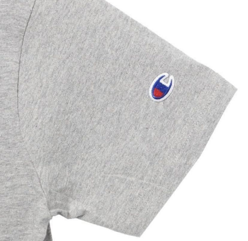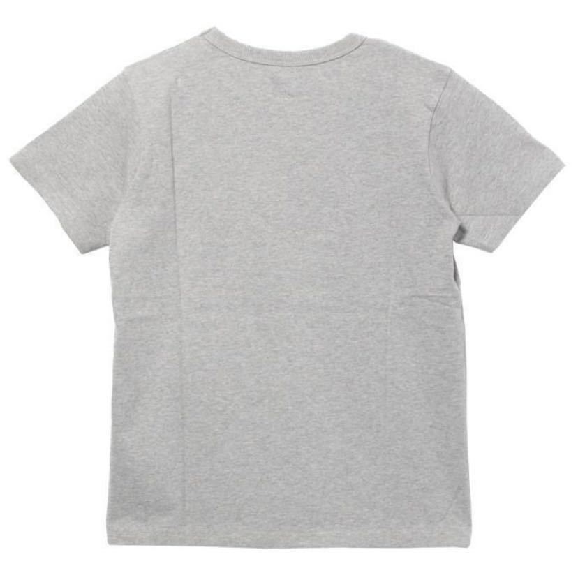 胸と袖にブランドロゴが刺されたシンプルなTシャツ。