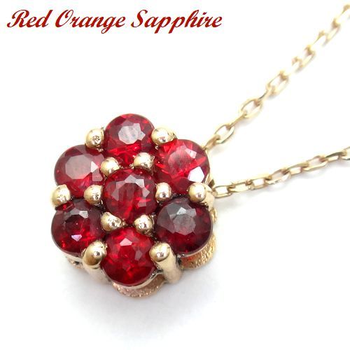 【セット】K10PG レッドオレンジサファイア フラワー ピアス&ペンダント ネックレス ジュエリー 9月 誕生石 サファイア 箱付き