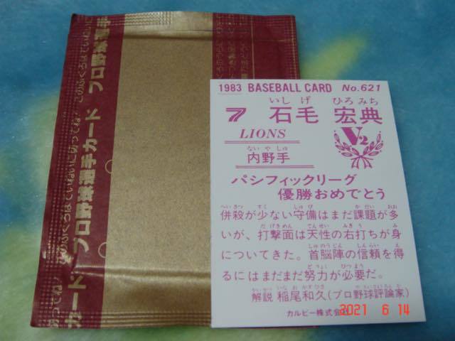 *激レア 未開封・開封品・袋付き  限定版レアブロック カルビー83年『パシフィックリーグ優勝おめでとう・・・V2』 NO.621(石毛/西武)極美品 *