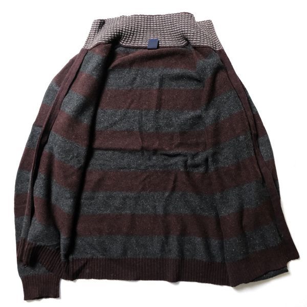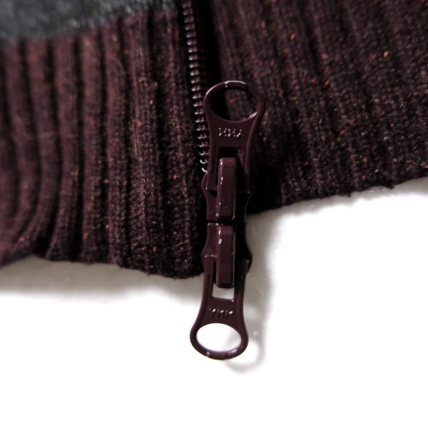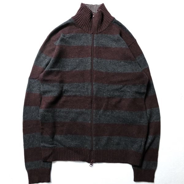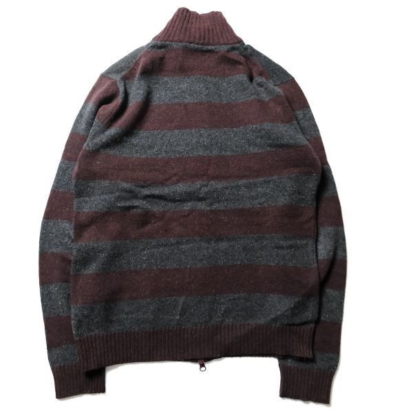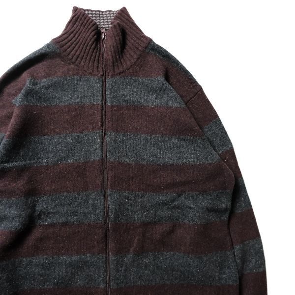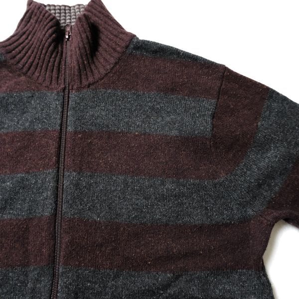 00's ギャップ GAP 太ボーダー コットン ジップアップ カーディガン (M) エンジ×灰系 ネップ入 シルク ウール混 旧タグ オールド 2004年製
