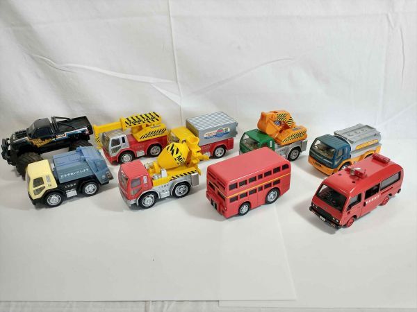 車 ミニカー おもちゃ 玩具 9点 まとめ売り はたらくくるま クレーン車 ミキサー車 清掃車 消防車 トラック バス (21_618_3)