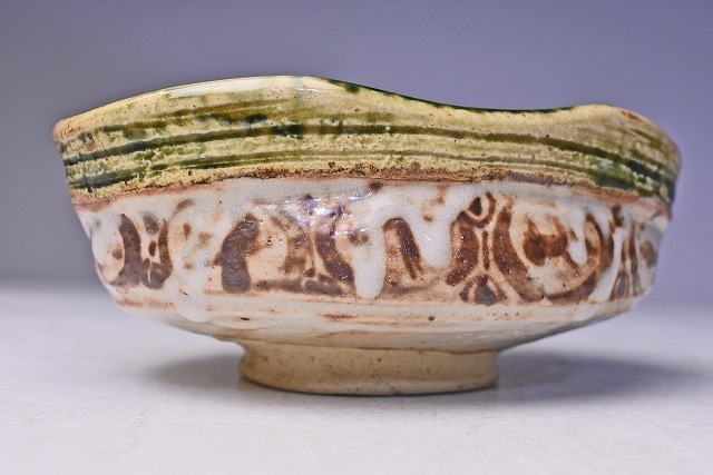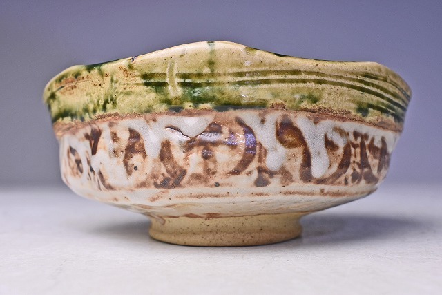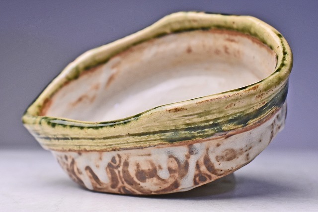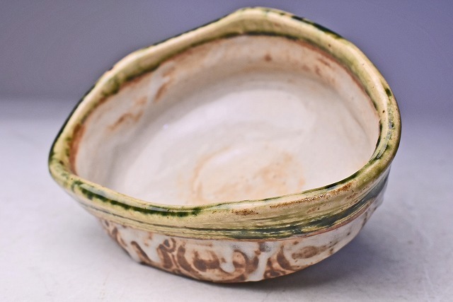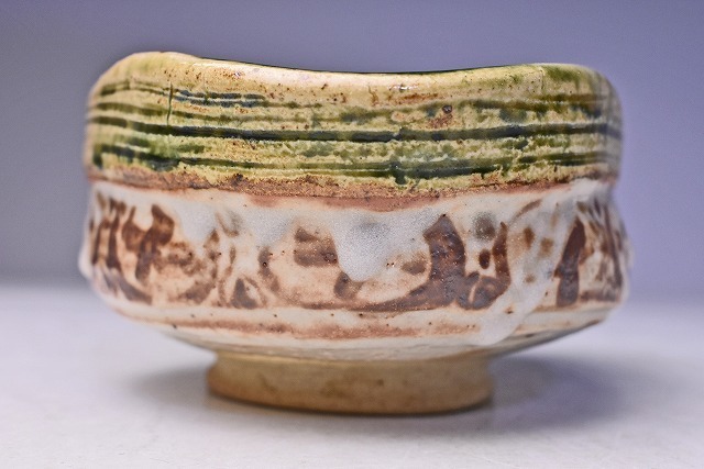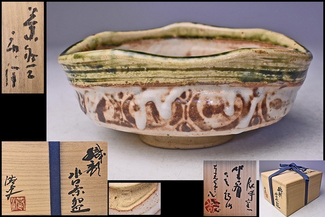 永江港史 ★ 清水公照:絵付 ★ 織部茶碗 ★ 共箱 清水公照:書付 ★ 造形良く景色に味わいのある上作 ★ 茶道具 ★