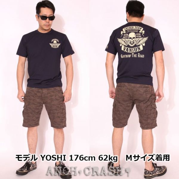 当店別注 VANSON ドライ 半袖Tシャツ ACV-903 ネイビー【Mサイズ】スカルウィング 吸汗速乾 抗菌防臭 UVカット バンソン ハーレー