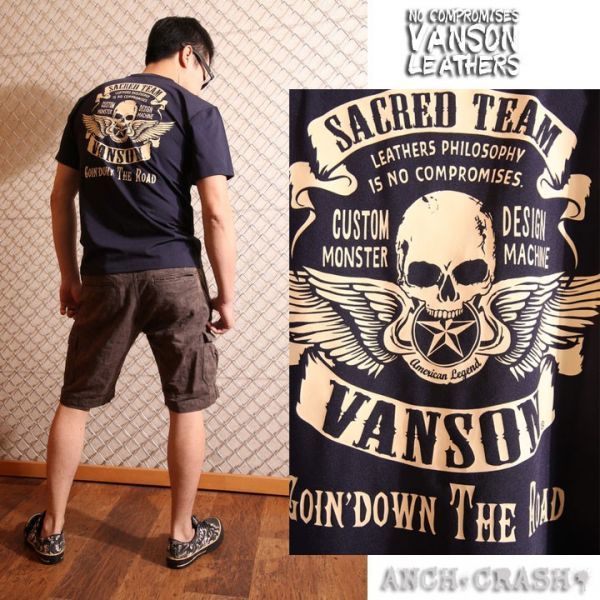 『アメリカが生んだ革の魔術師』高品質で世界中に愛される伝説のバイカーズブランド【VANSON(バンソン)】×当店ANCH CRASH(アンク クラッシュ)別注ドライTシャツ☆スカルウィング!