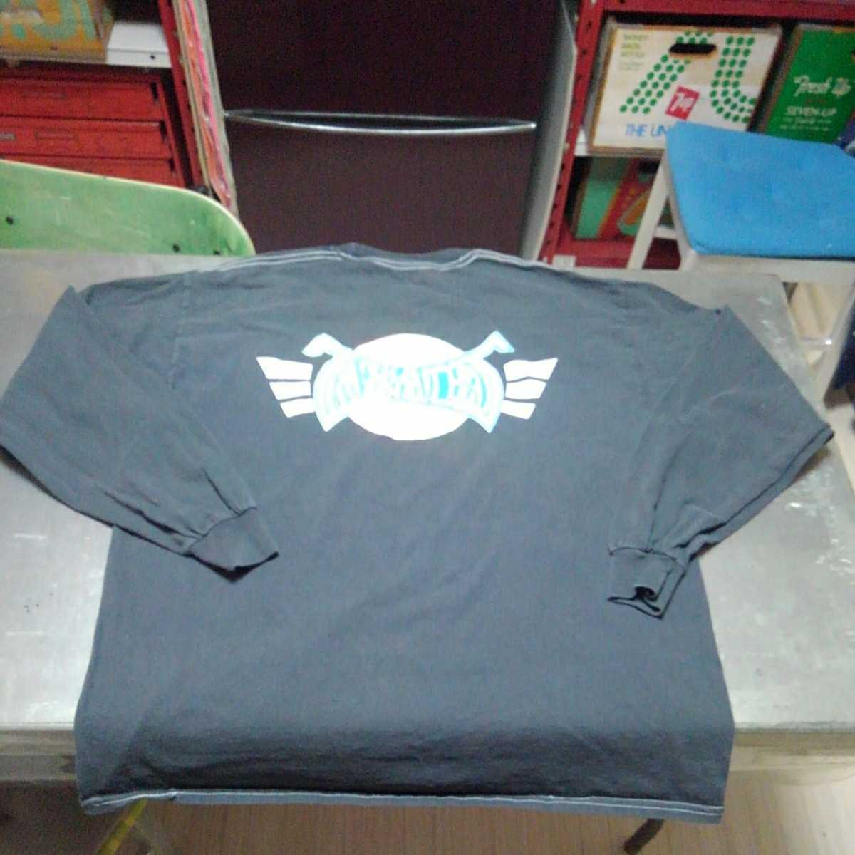 z-flexロングTシャツLです。一般的なユーズドになります。ロゴの割れなどありますが、状態はいいかと思われます。ブラックになります。平置きサイズ約身幅脇辺り575総丈720袖丈脇から515ミリ位になります。