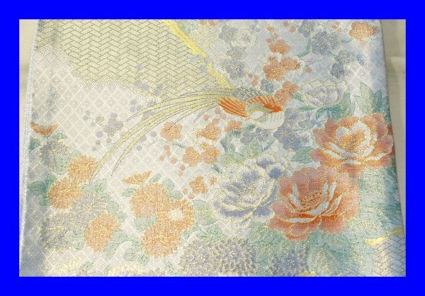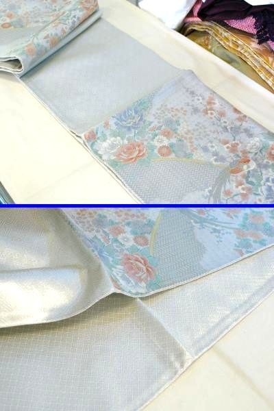 ■商品名○美品 女性着物 正絹 六通 袋帯 銀糸 花柄 447cm K0164 210319 | |||||||||||||