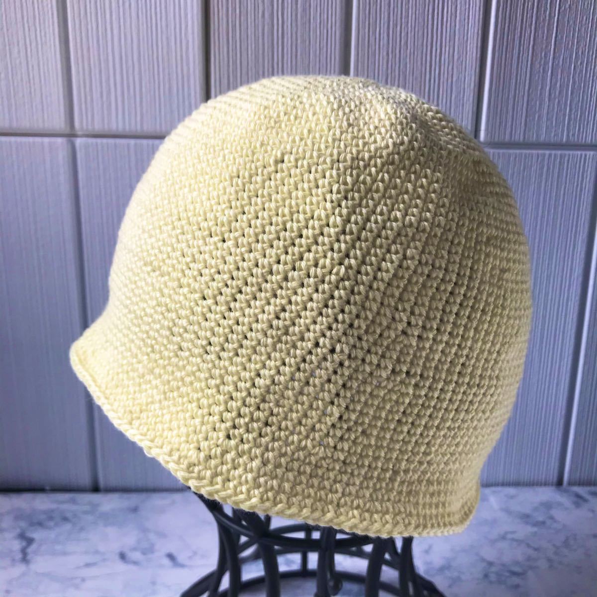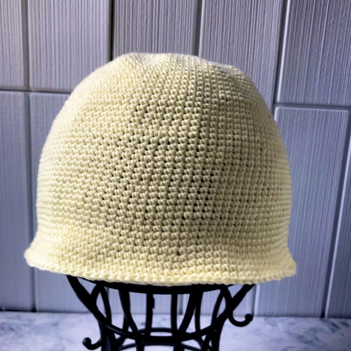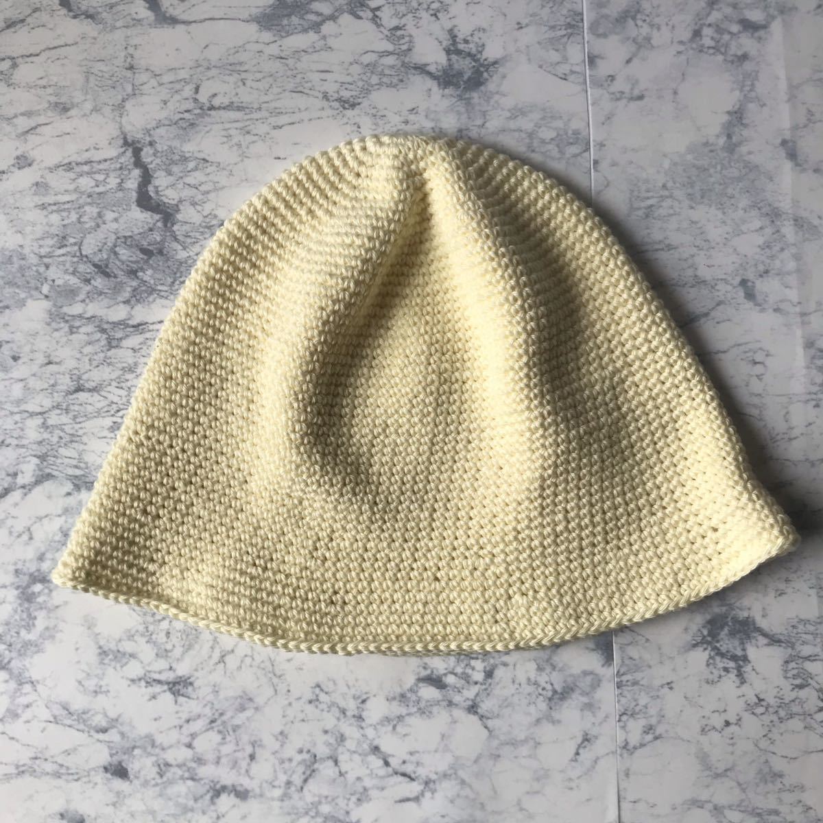 コットン100%、クリーム糸で編んだスリーシーズン活躍する帽子です。