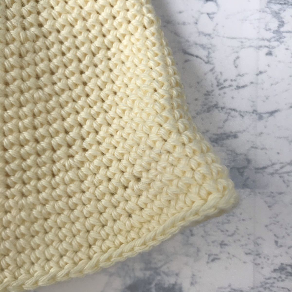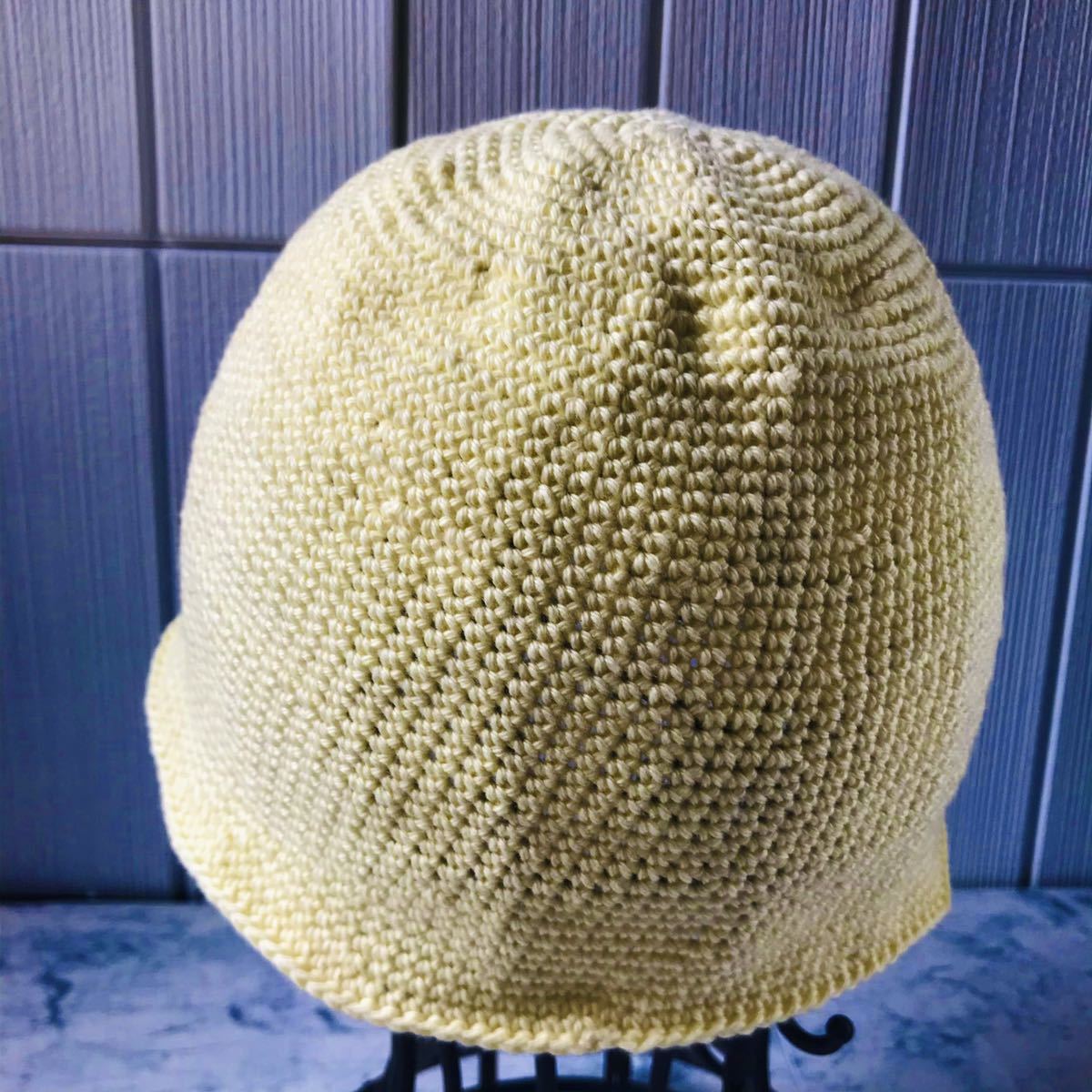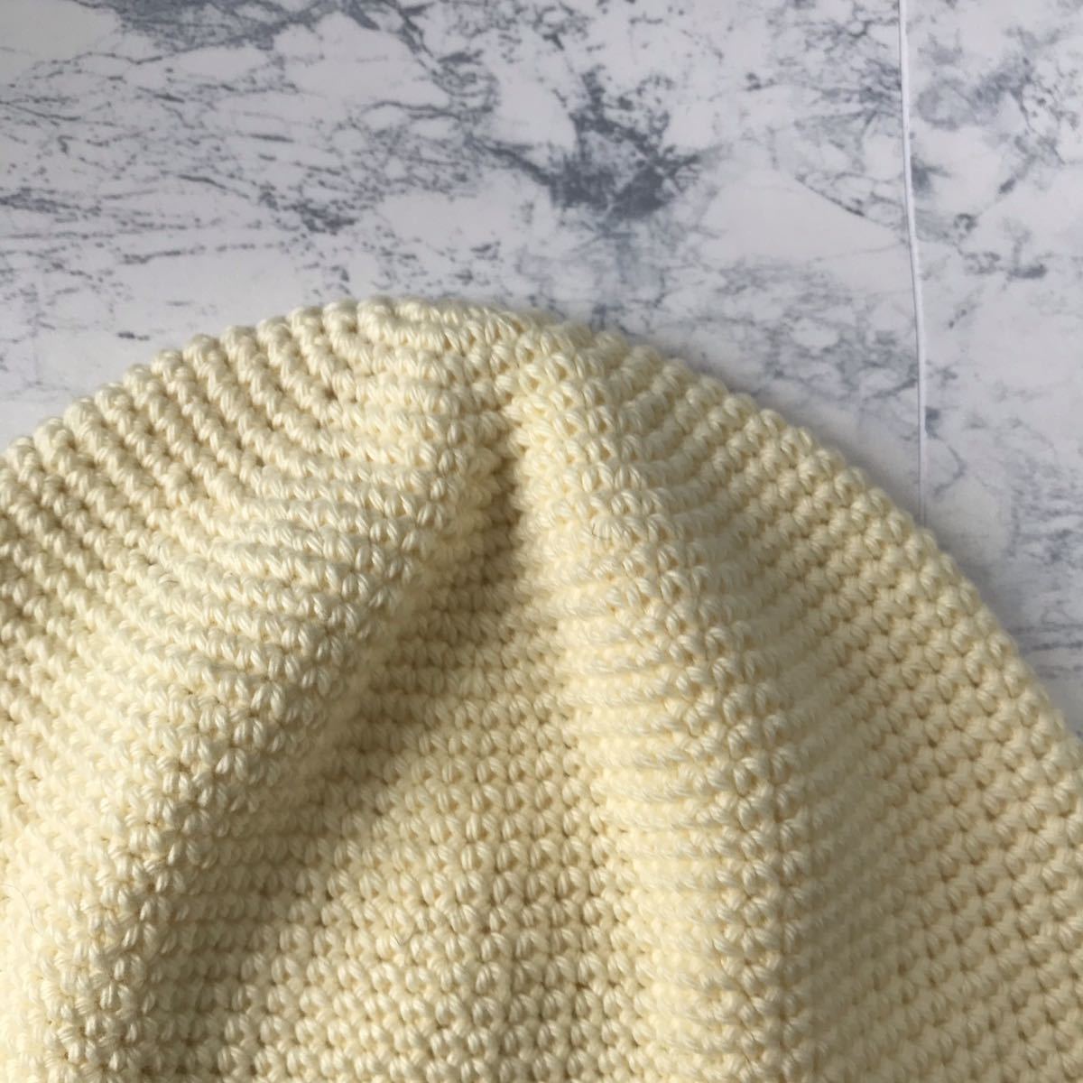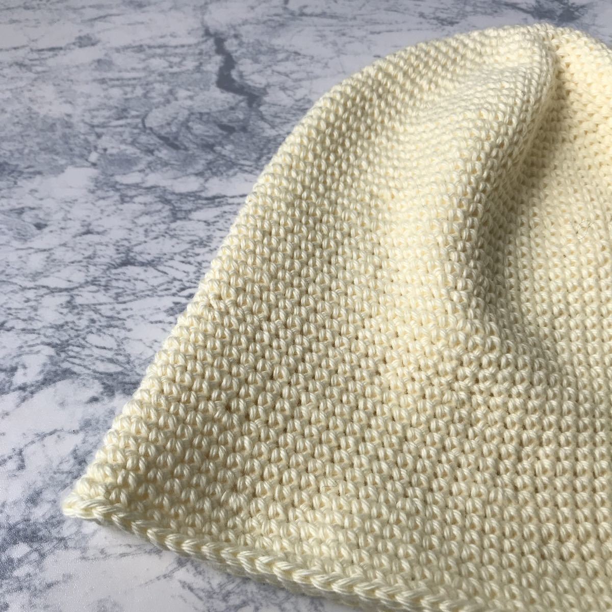 コットン100%、クリーム糸で編んだスリーシーズン活躍する帽子です。