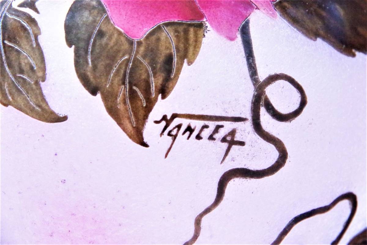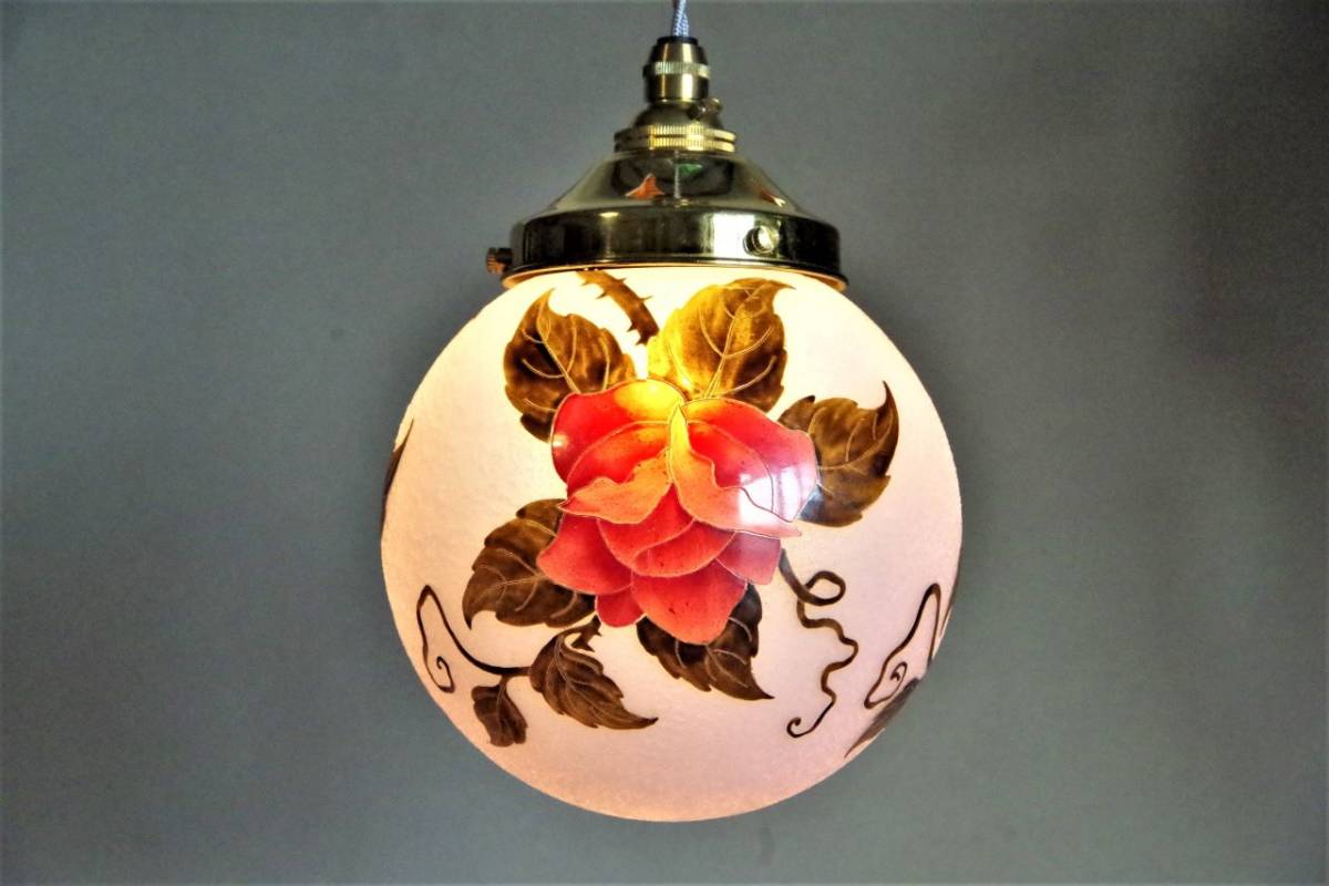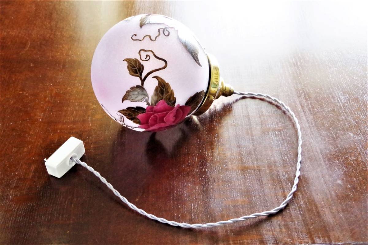 ☆仏蘭西 アンティーク 花柄カメオ グローブ ガラス シェード NANCEA ナンセア 薔薇文様 ナンシー派 灯具付☆№22