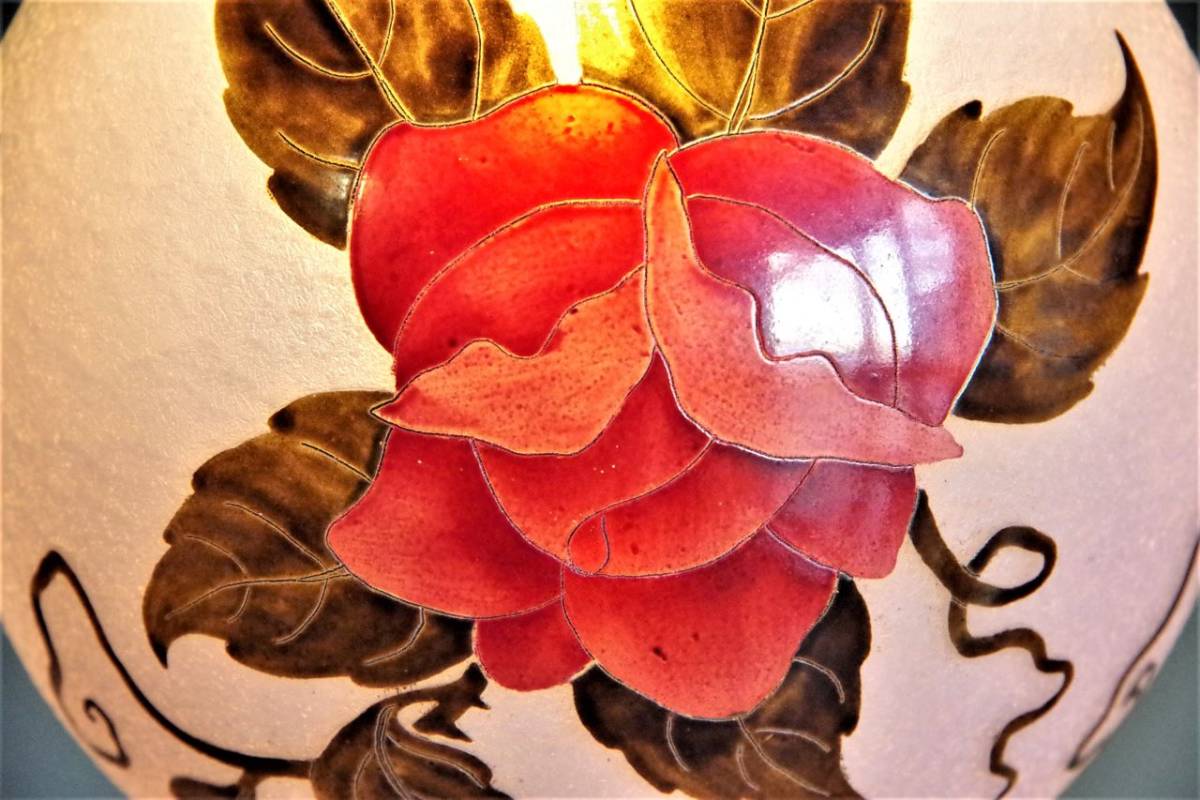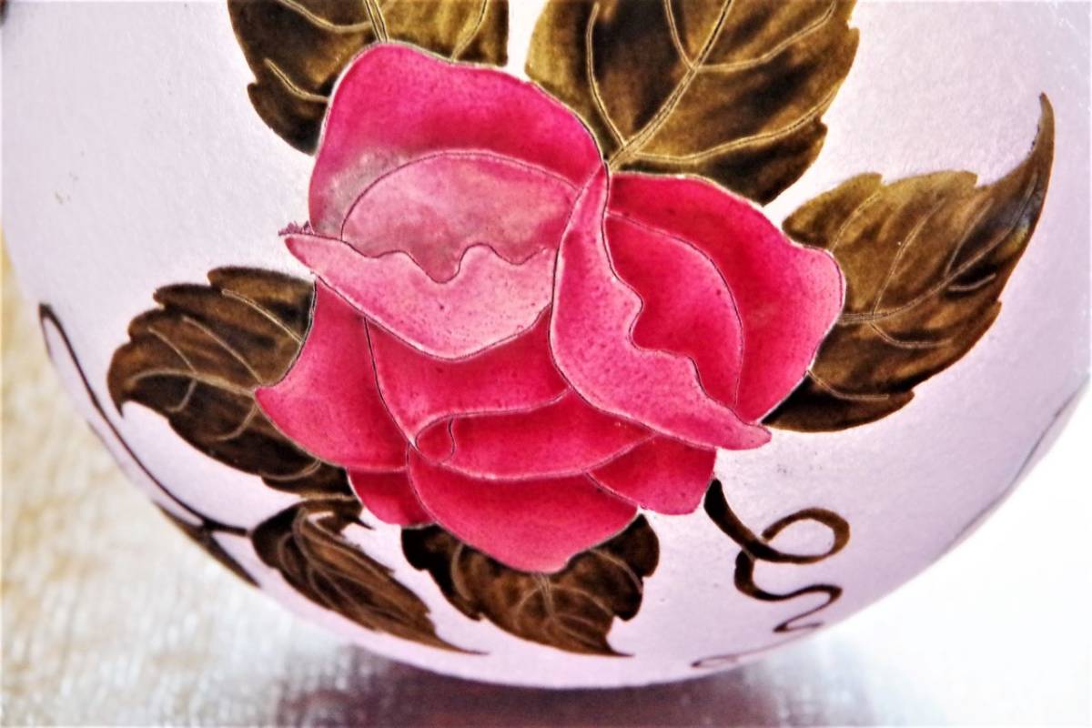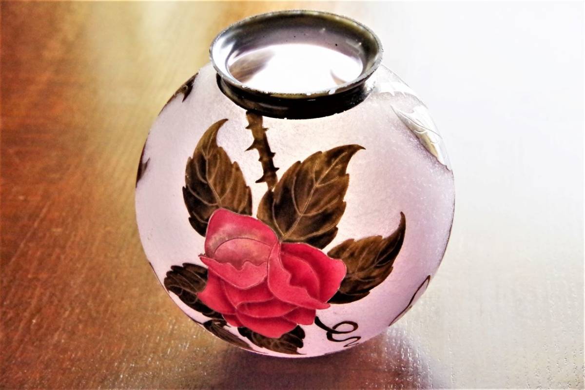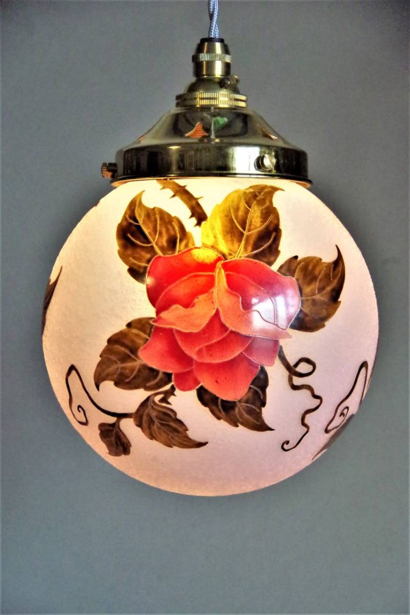 ☆仏蘭西 アンティーク 花柄カメオ グローブ ガラス シェード NANCEA ナンセア 薔薇文様 ナンシー派 灯具付☆№22
