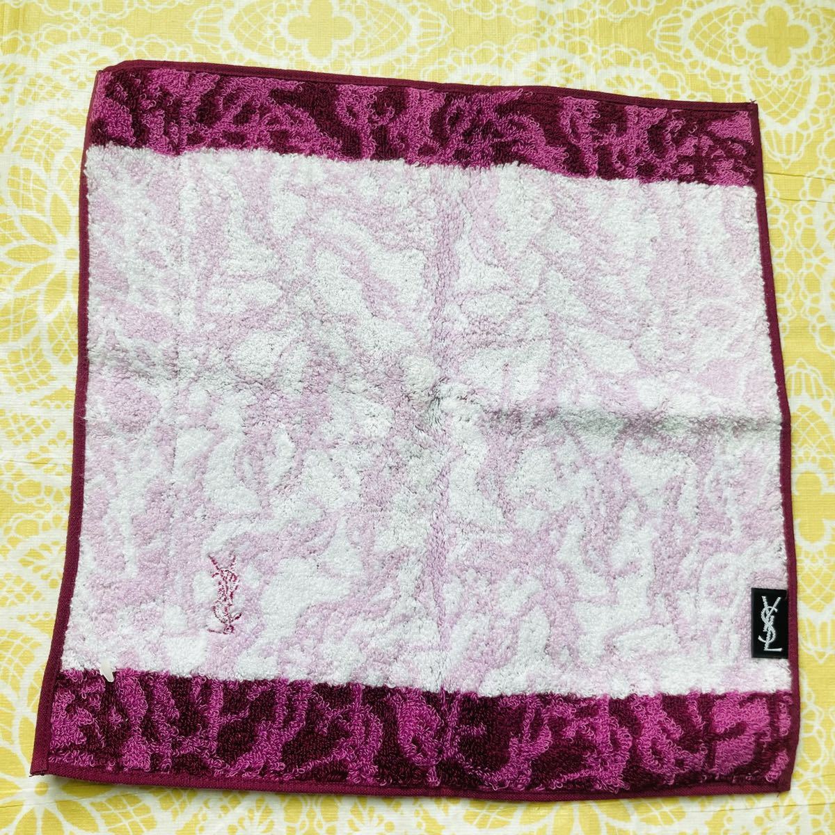【レア柄】新品/イヴサンローラン/タオルハンカチ/正規品/未使用/YVES SAINT LAURENT/YSL/ハート/ハンカチ/タグ付き/ピンク/レディース