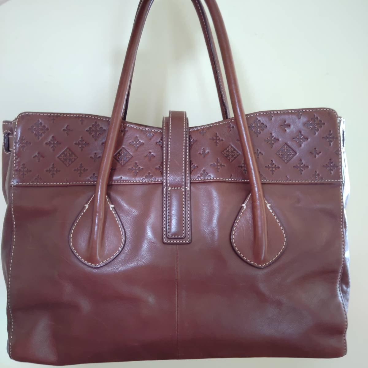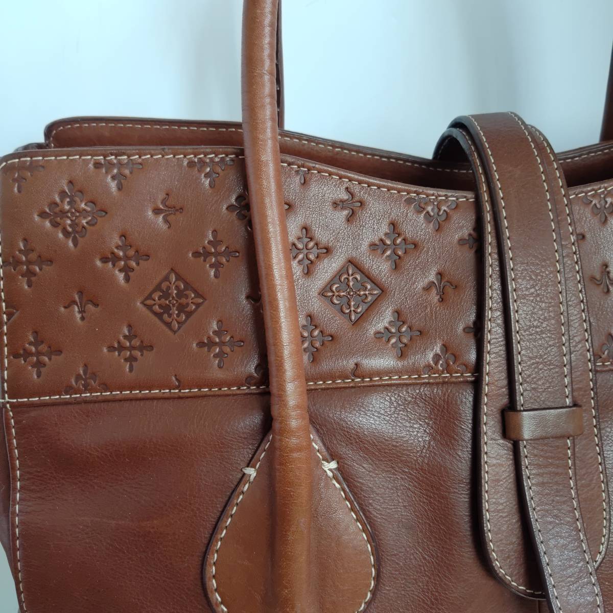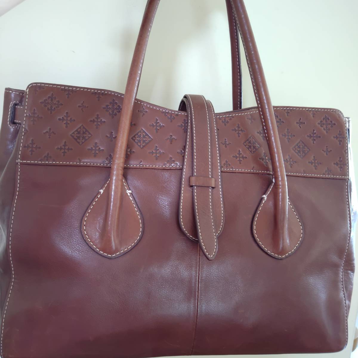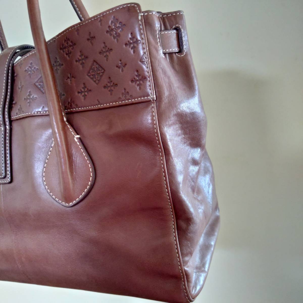 russet ラシット トートバッグ モノグラムプレスシリーズ 型押し 本革 牛皮 ハンドバッグ オールレザー ブラウン 茶色 送料無料 匿名配送