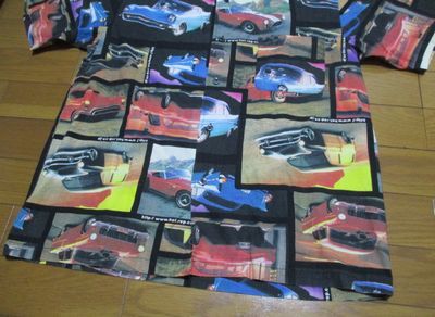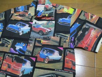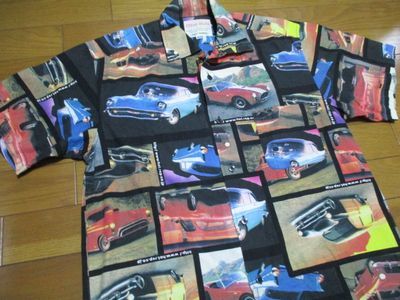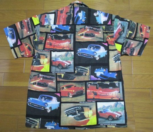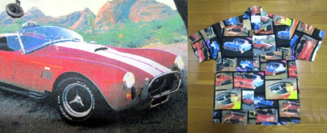 激レア 日本製 発色良し アメ車 アロハシャツ Mサイズ 転写 写真 総柄 フォト CAR コブラ COBRA 車柄