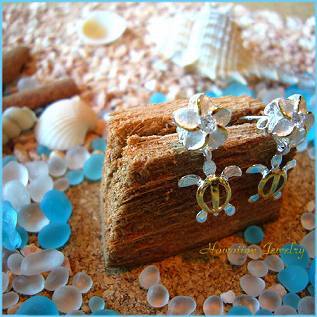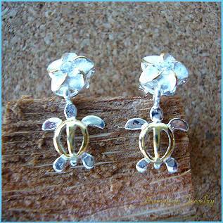 ハワイアンジュエリー プルメリア・ホヌ(亀)ピアス♪