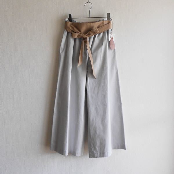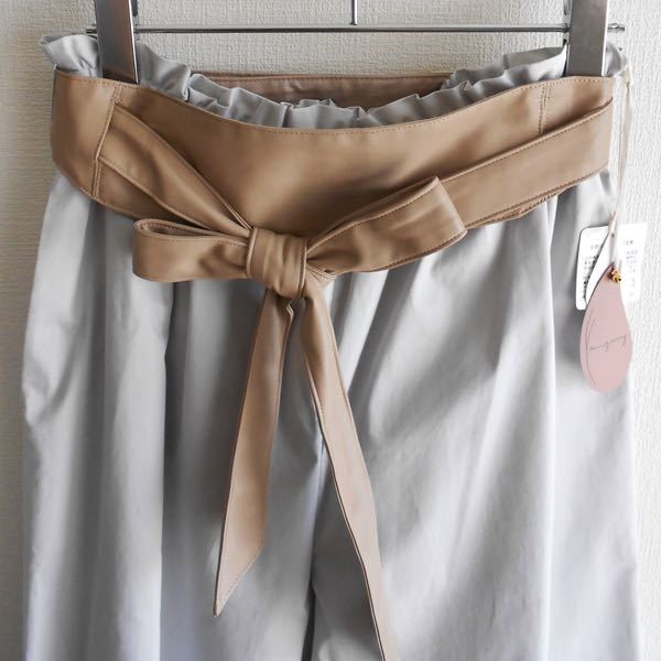 yangany ヤンガニーのサッシュリボンベルト付きワイドパンツ。ベルトはフェイクレザーで取り外し可能です。