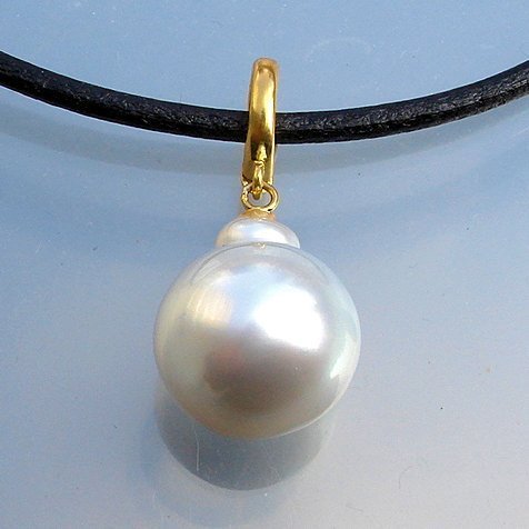 色は南洋真珠の貝らしいシルバー掛かった白色系の珠です。