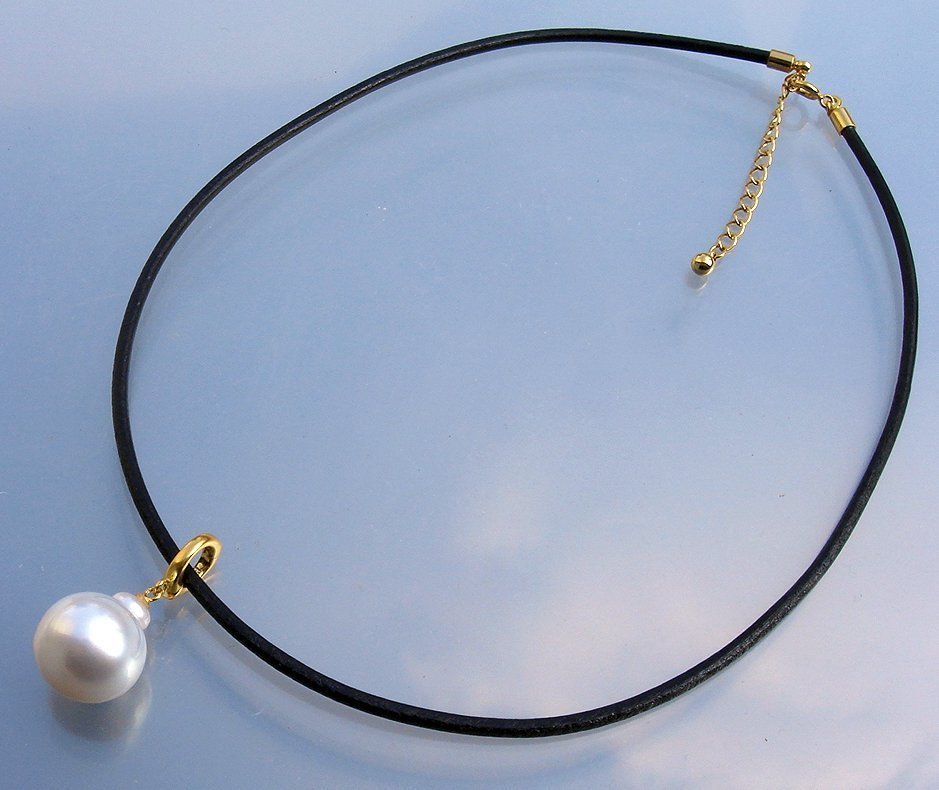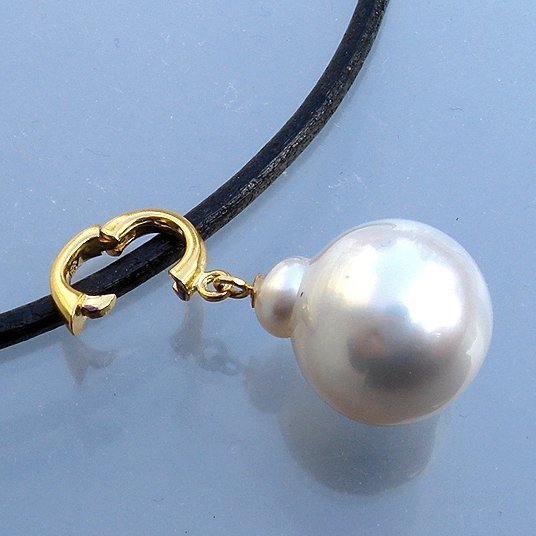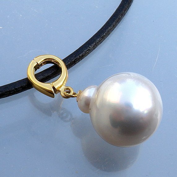 PN507:SV金色メッキ 南洋真珠 ジョイント式ペンダント(合皮ネックレス付)