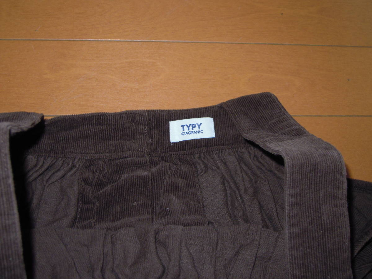 CIAOPANIC TYPYサロペットのサロペット スカートです。コーデュロイっぽい生地です。サイズ表記はありませんがフリーだと思われます。通常はMサイズを着用しています。実寸で着丈約85cm(肩紐から)、身幅約50cm(脇下)です。使用感はありますが特に目立ったダメージはなくまだまだ着用できます。USEDをご理解の上、ご入札をお願いします。支払金額は落札金額+送料になります。気になる事があれば入札前に質問して下さい。分かる範囲でお答えします。ノークレーム・ノーリターンでお願いします。                                                                                                                                          注意事項:評価に悪いが多い方、神経質な方は入札をご遠慮下さい。入札を取り消す場合がありますのでご了承下さい。複数落札の場合は送料が変わりますのでご注意下さい。