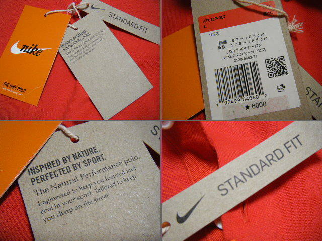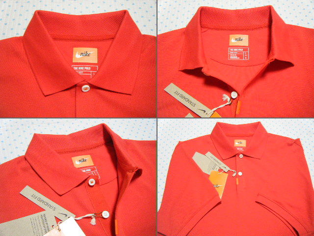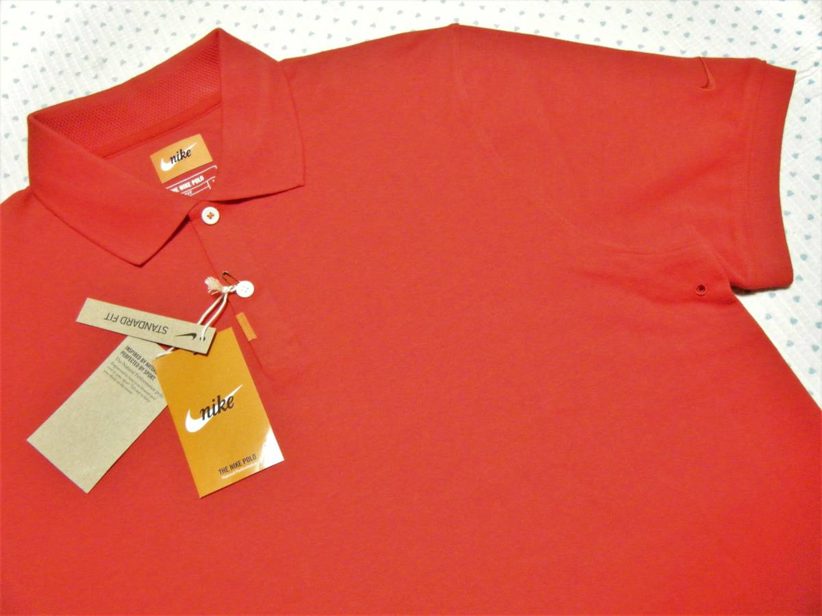 本体は綿・ポリエステル素材。  吸汗速乾+通気機能を施したゴルフ&カジュアル用高機能/涼感ポロシャツ。   スタンダードなポロ定番の鹿の子ポロ。    脇下にはベンチレーションホール装備(画像参照)。  襟肌面はメッシュ素材加工(画像参照)。    左袖の「スォッシュ」マークは刺繍。     モデル名 THE NIKE POLO     カラー レッド