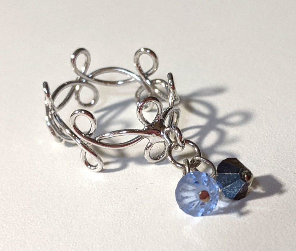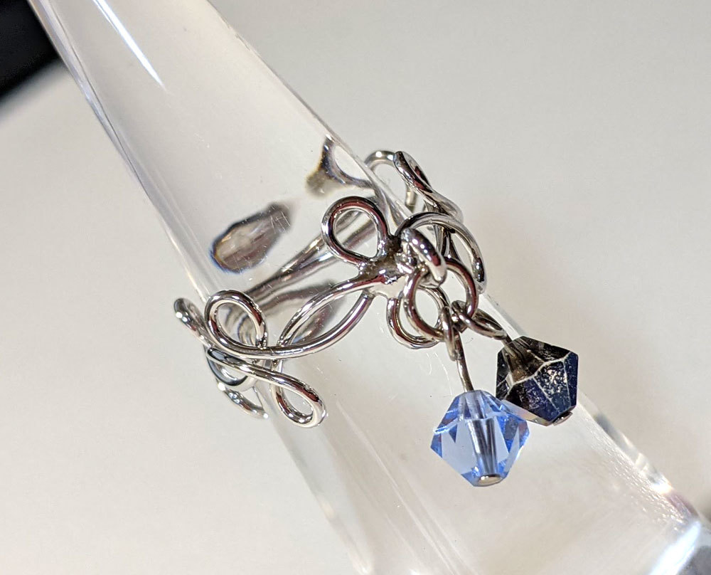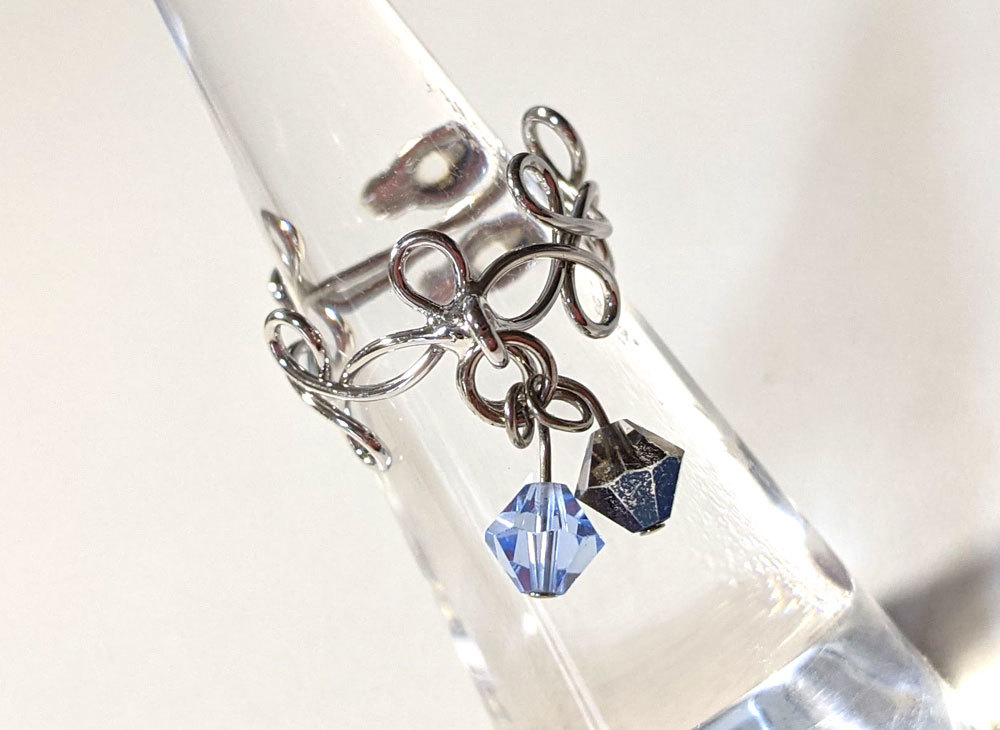 ■ie_885 昭和レトロ アンティーク コスチュームジュエリー ★ 銀色 リング 指輪 13号 ユラユラ ブルー ネイビー 水色 青