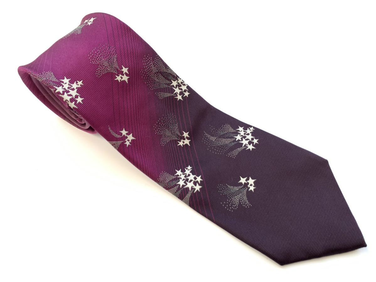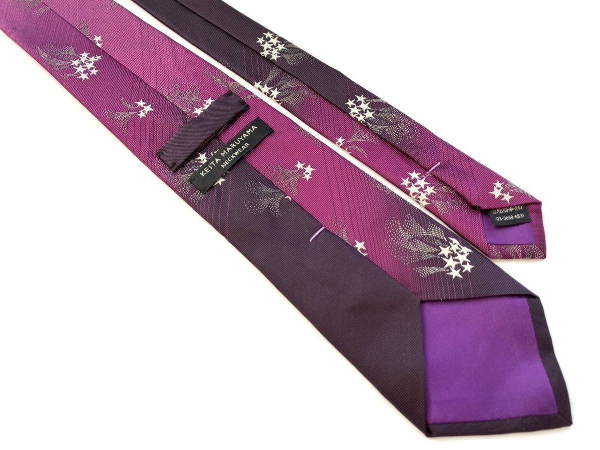 グラデーションかがったパープルベースにシルバーの星柄を施したオシャレなネクタイです。