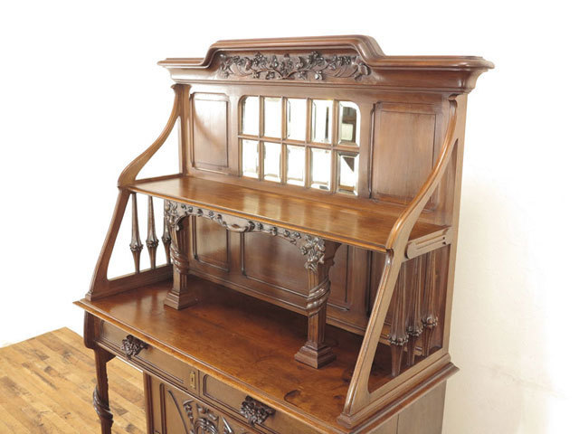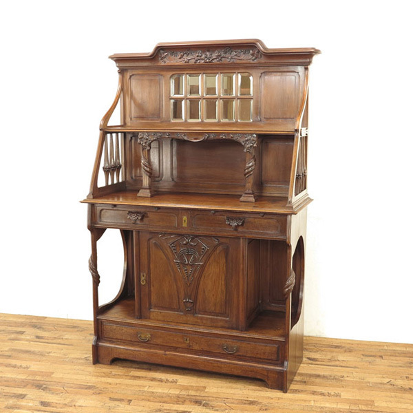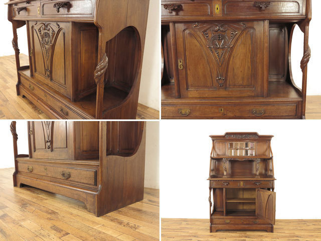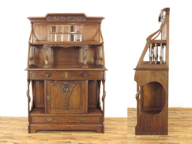 アールヌーヴォー キャビネット 重厚感ある佇まい 繊細 華やかなデザイン 収納棚 飾り棚 フランス アンティークフレックス 63495