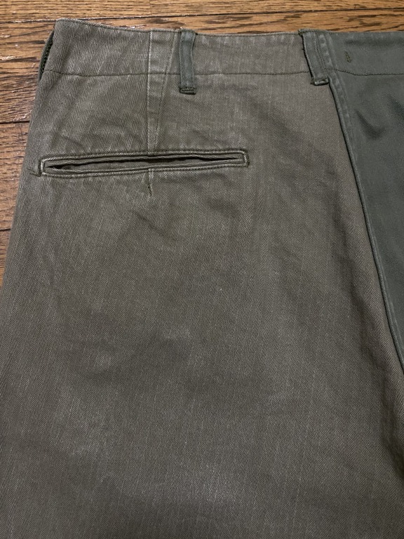 お色はオリーブとオリーブ系カーキです。カーキの方はヘリンボーンです。
