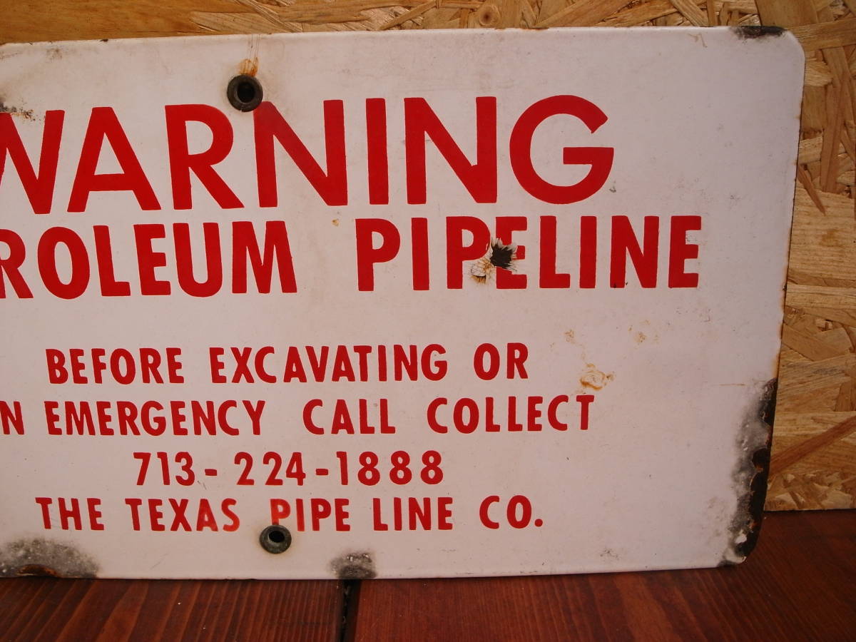 | 米国で購入した、テキサス パイプライン社の緊急警告看板です。パイプラインの案内表示と緊急時の連絡先の案内が書いてあります。実際にパイプラインで使用されていたものです。ズシリと重いホーロー製です。白地に鮮やかな赤で印字してあります。ホーローは艶があります。とても良い状態です。最近はオイルフィールドの油田やパイプラインで実際に使用されていたホーロー製の看板が、見つけにくくなっており、価格も高くなっています。 状態 キズ、汚れと錆があります。 サイズ タテ約20.5センチ× ヨコ約38センチ ご覧いただきありがとうございます。  | |||