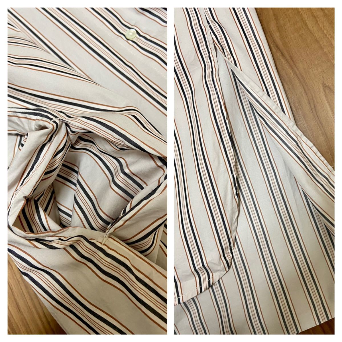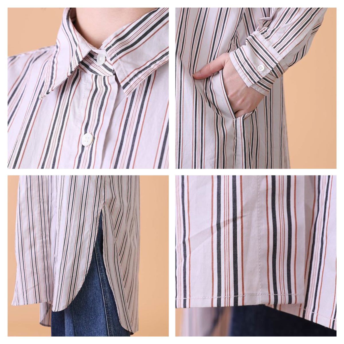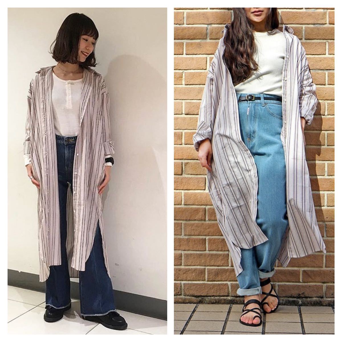 さらっとした生地感で春から夏にかけての時期には羽織りとしても使いやすいアイテムです。ストライプ柄とIラインシルエットで、すっきりとした印象のスタイリングを叶えてくれます。ボリュームのあるボトムとレイヤードすれば今年らしい雰囲気に。ベルトでブラウジングもしやすい柔らかい生地なので、様々なコーディネートをお楽しみ頂けます。