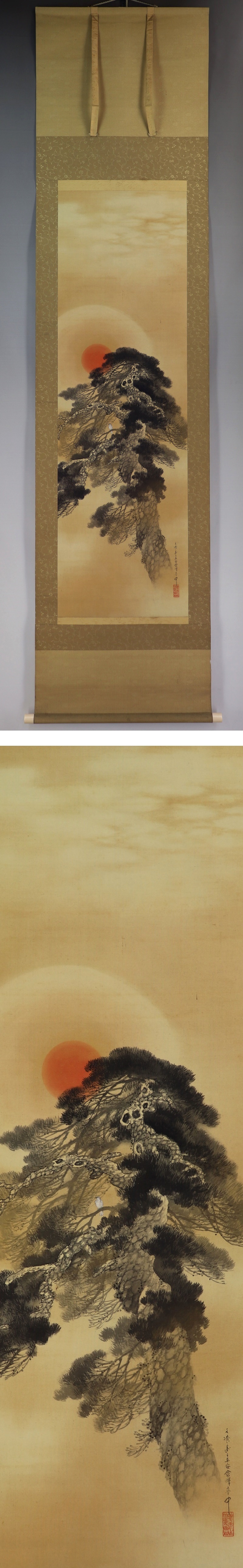 | №2010043 名品【真作】林文塘【朝暾】◆絹本◆共箱◆二重箱◆掛軸 | |
