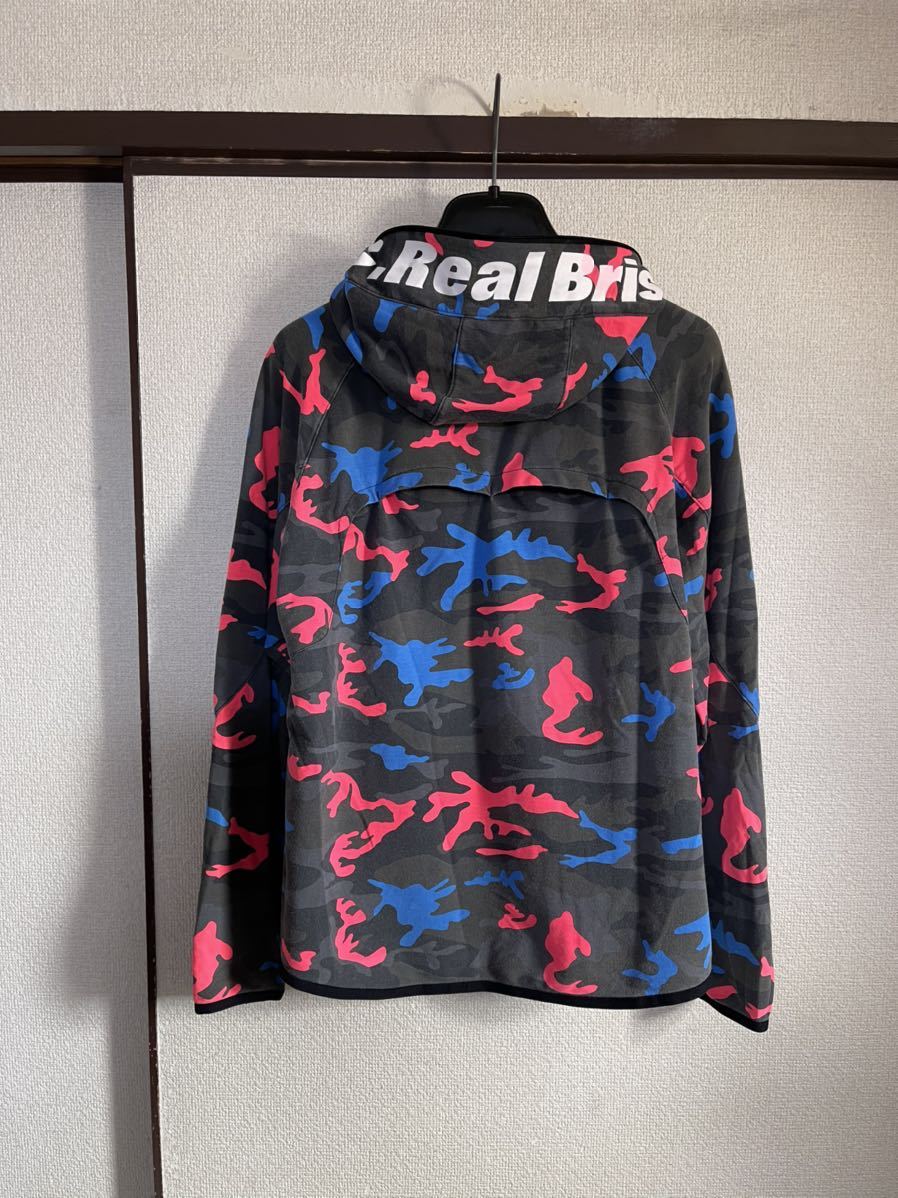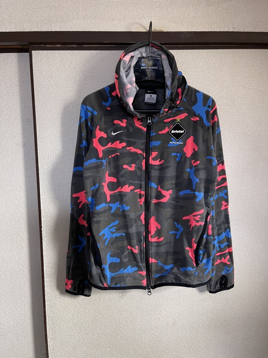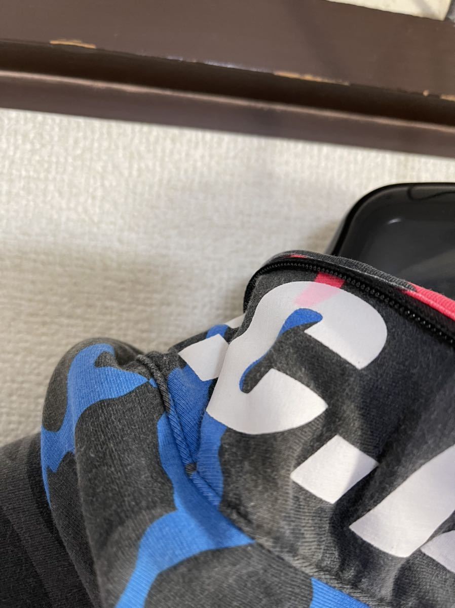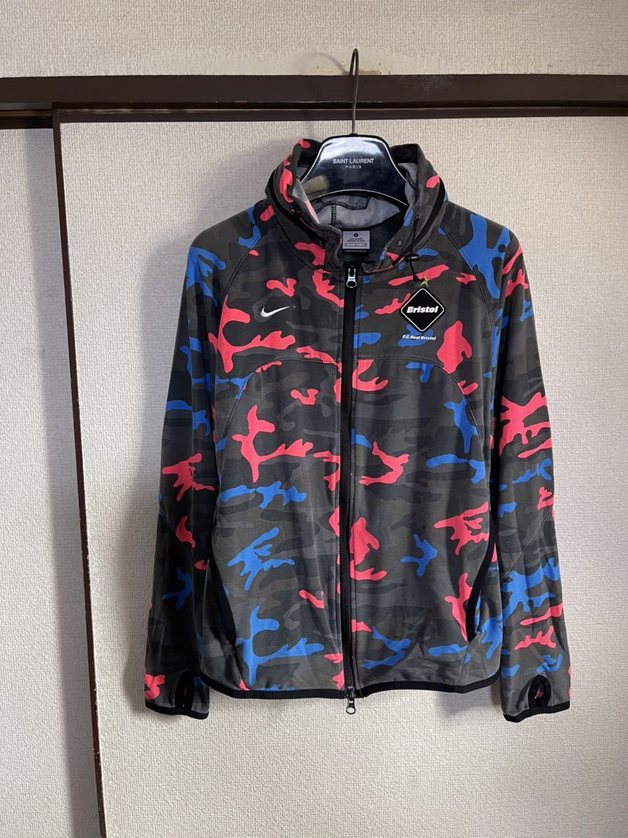 フードのロゴに色移りがございますが、こちらはフードを収納すればわかりません。また襟のドローコードの片側が外れている事とナイキのロゴ付近にやや使用感がございますが着用に問題はなく、まだまだ使って頂ける商品になります。