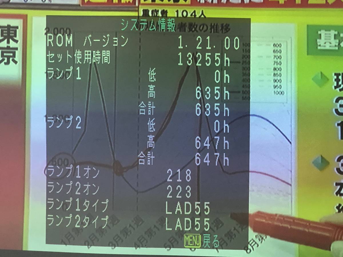 ランプ時間 ランプ1 合計:635H ランプ2 合計:647H