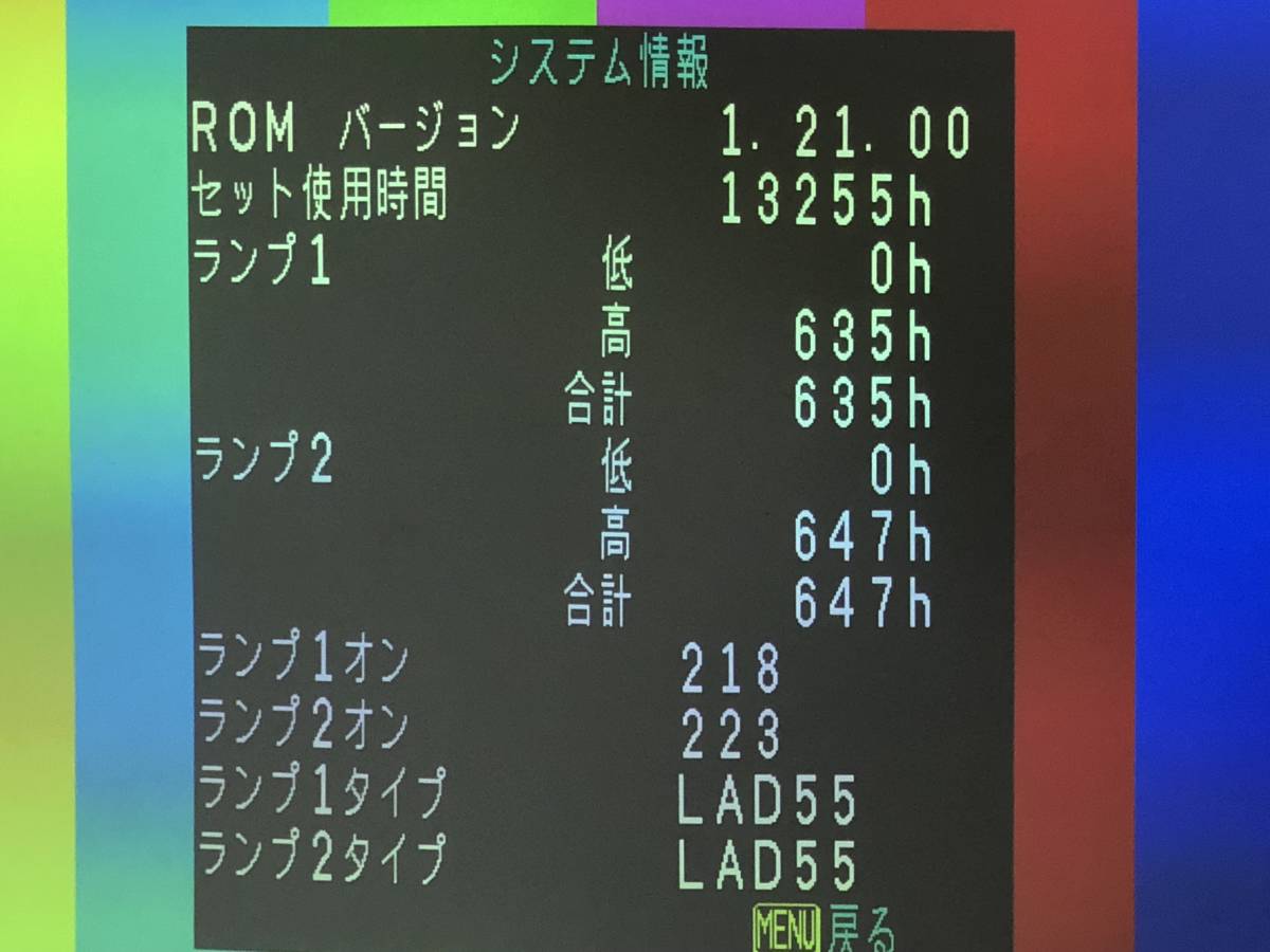 ランプの使用時間(メニュー操作から確認)は下記の通りとなります。3、4枚目画像をご参照してください。