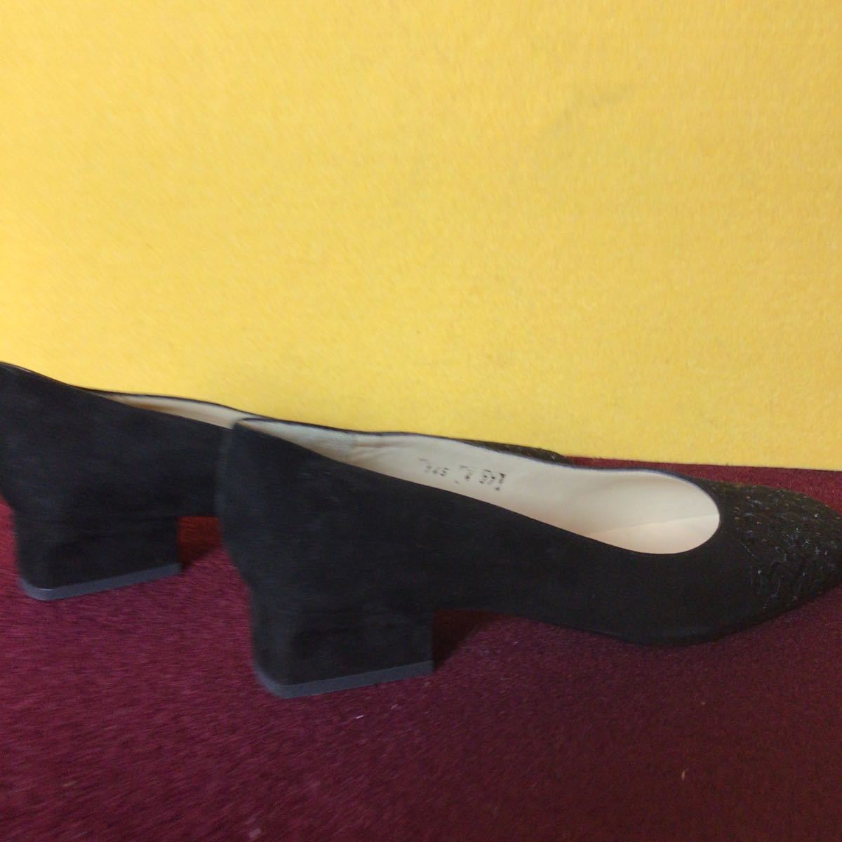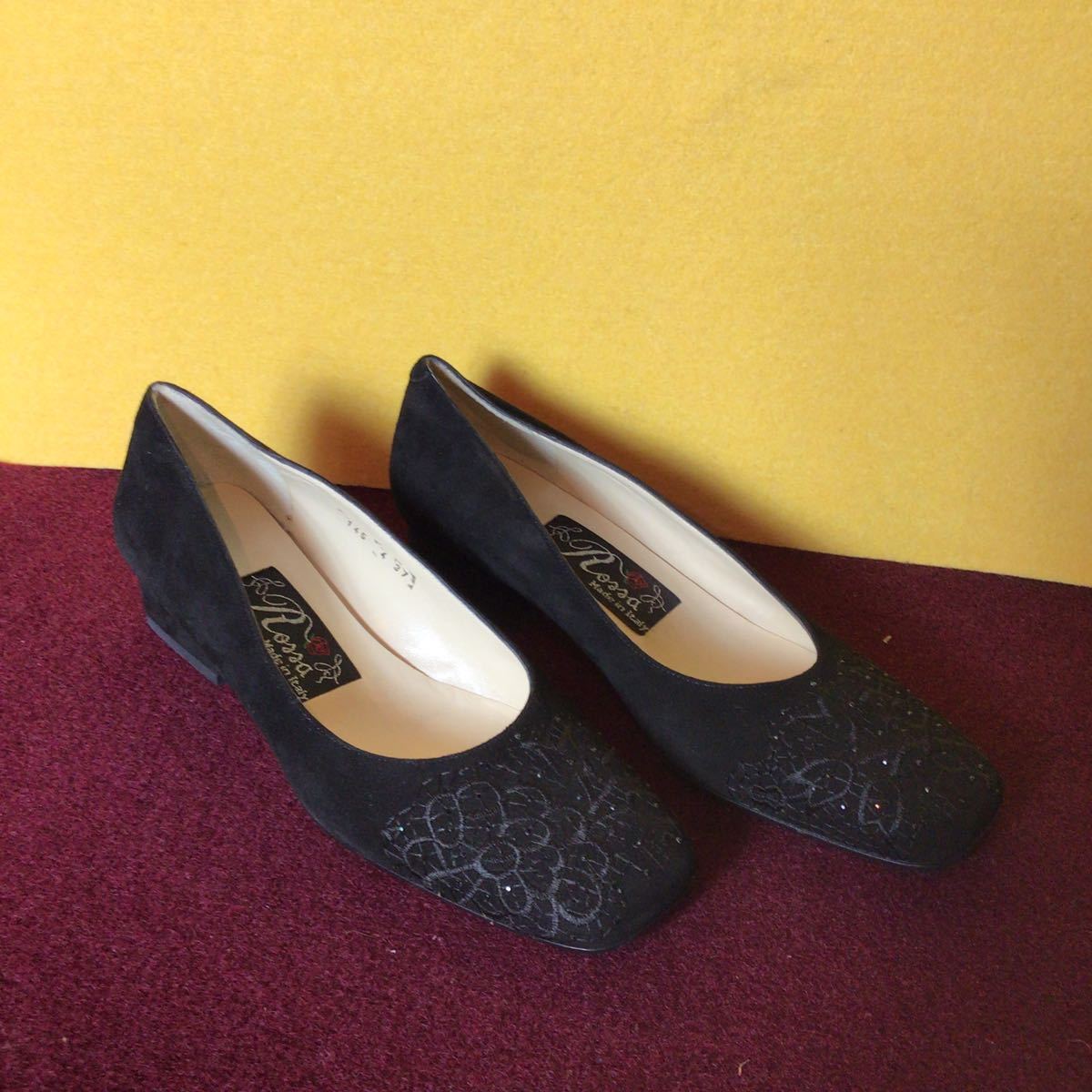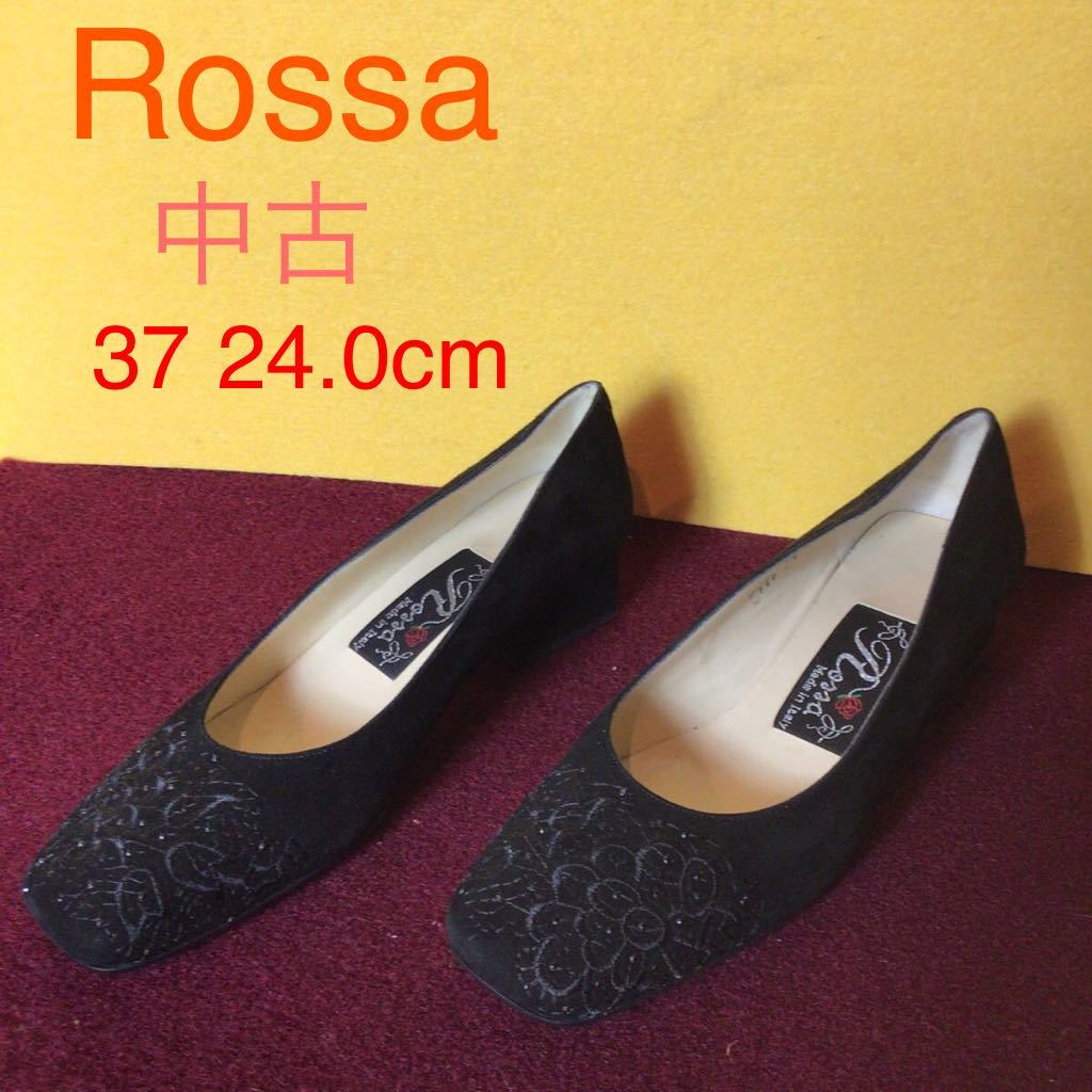 【売り切り!送料無料!】A-105 Rossa!37!24.0cm!刺繍!パンプス!スウェード!太ヒール!中古!