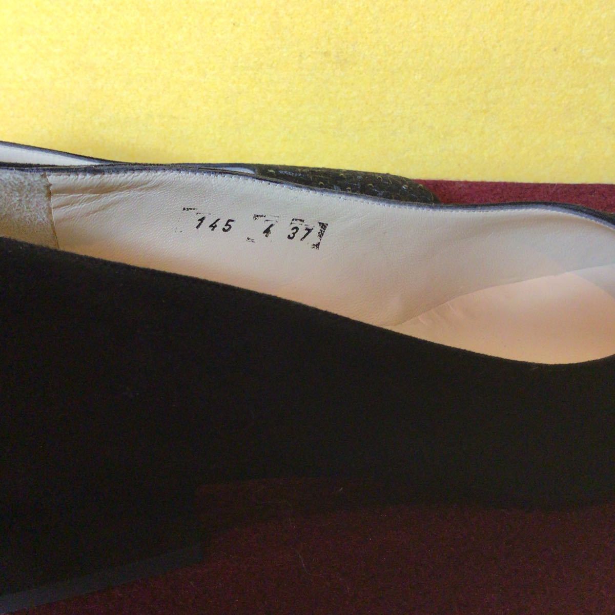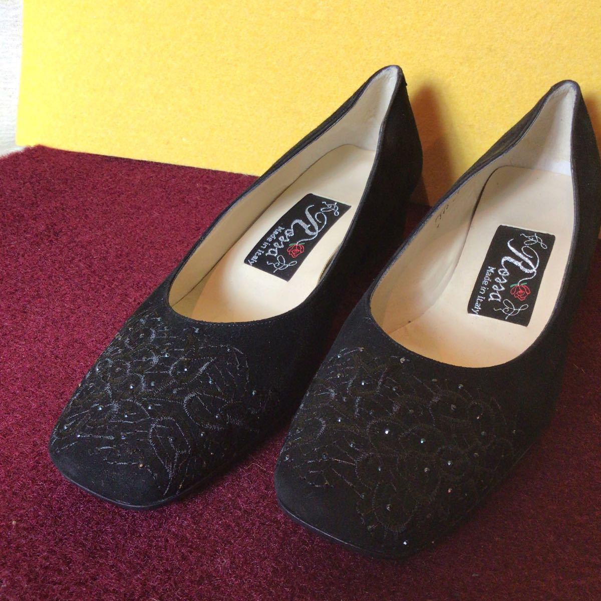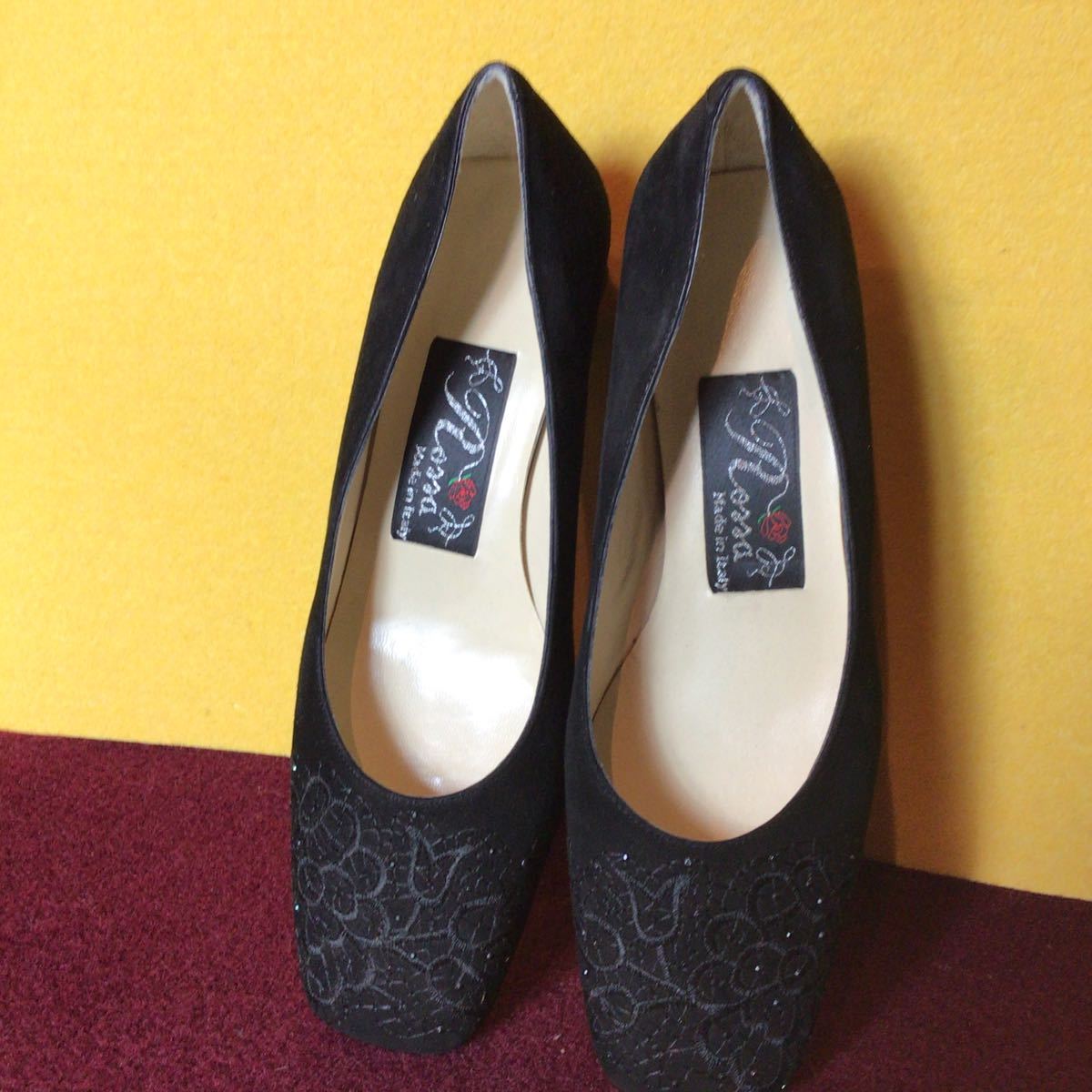 【売り切り!送料無料!】A-105 Rossa!37!24.0cm!刺繍!パンプス!スウェード!太ヒール!中古!